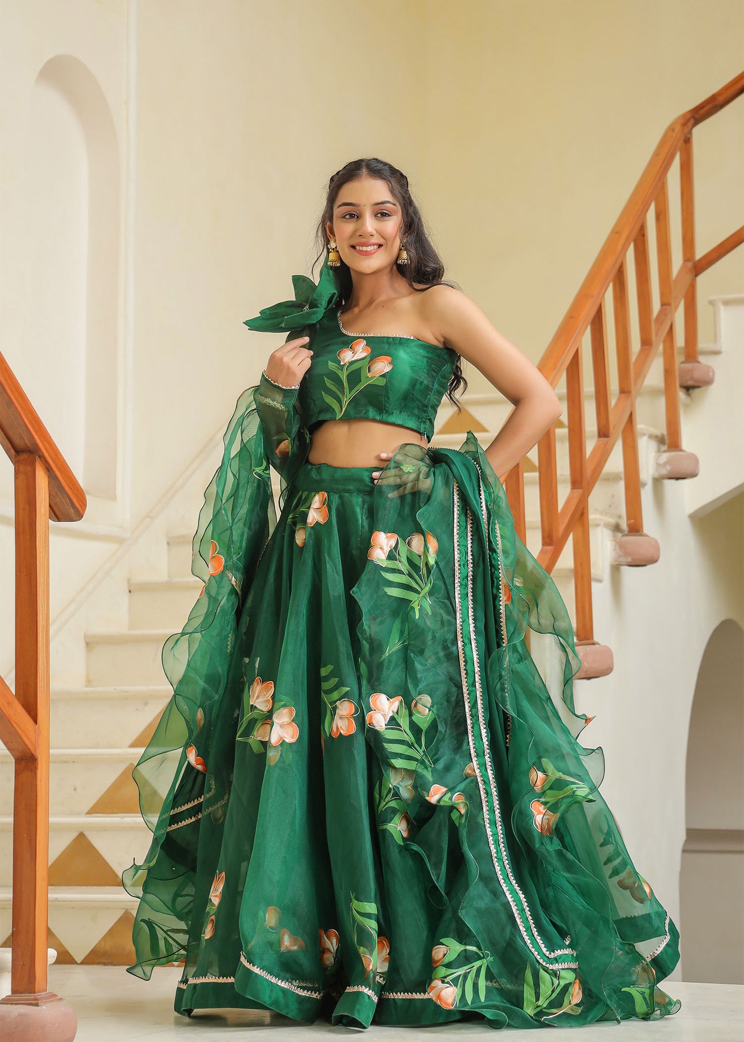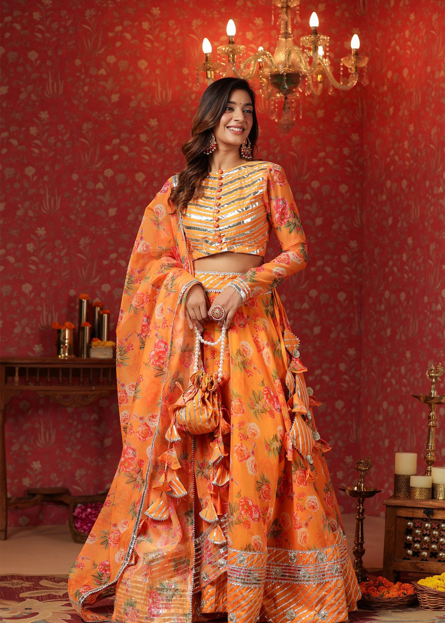 Sunshade Orange Organza Floral Printed Lehenga Set