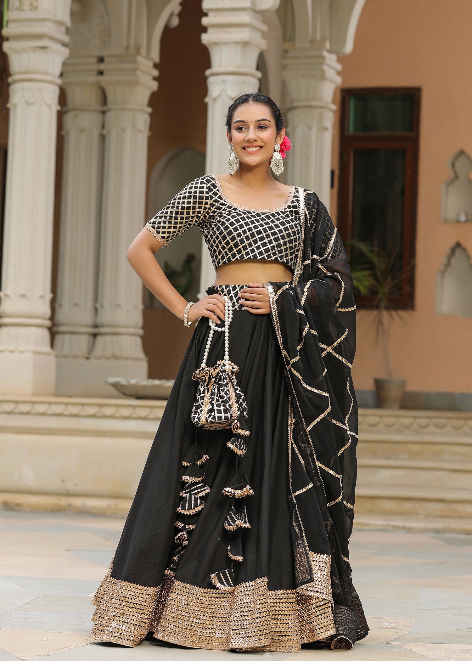 Black Cotton Silk Gota Embroidered Lehenga Set