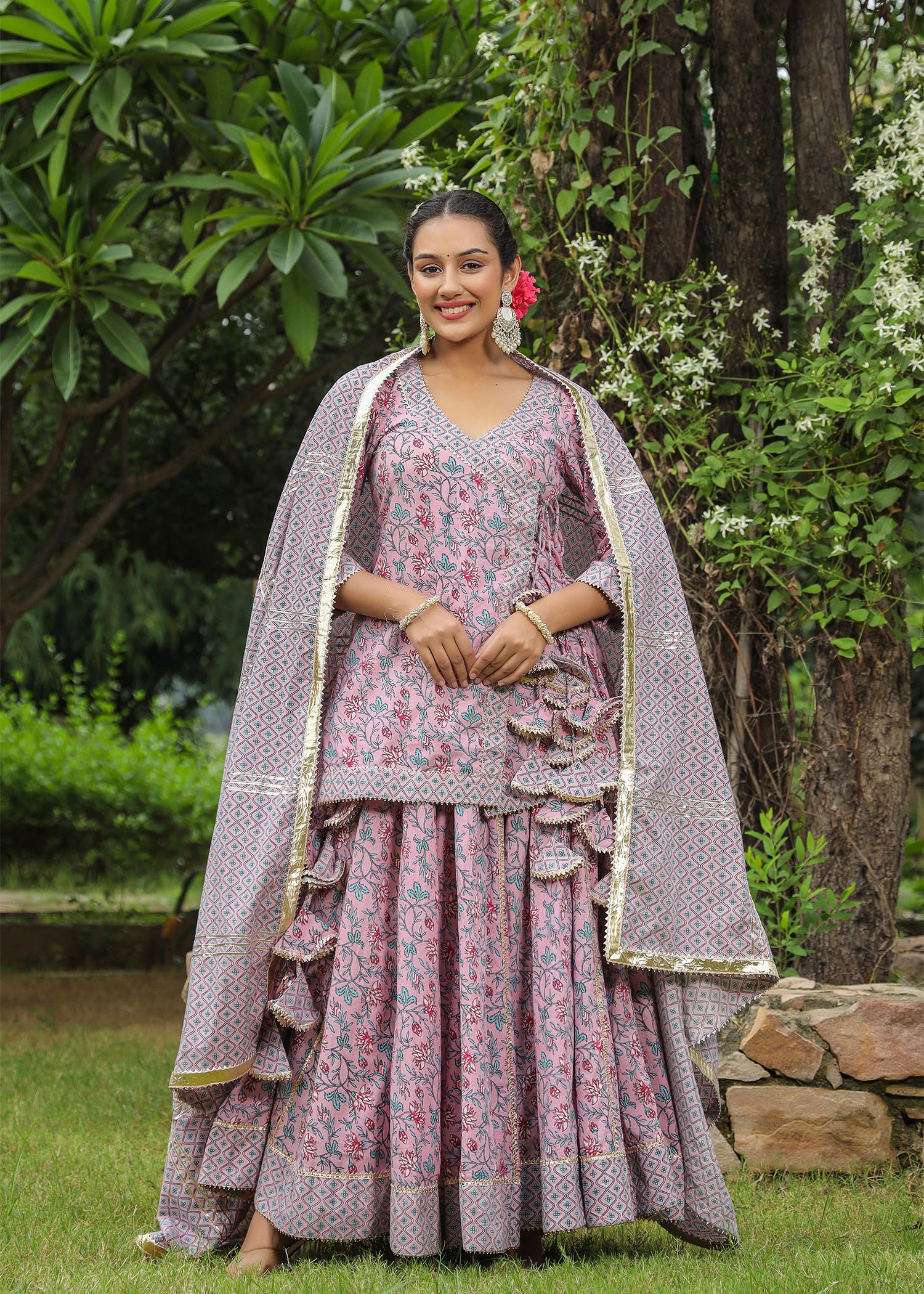 Blossom Pink Cotton Floral Printed Lehenga Set