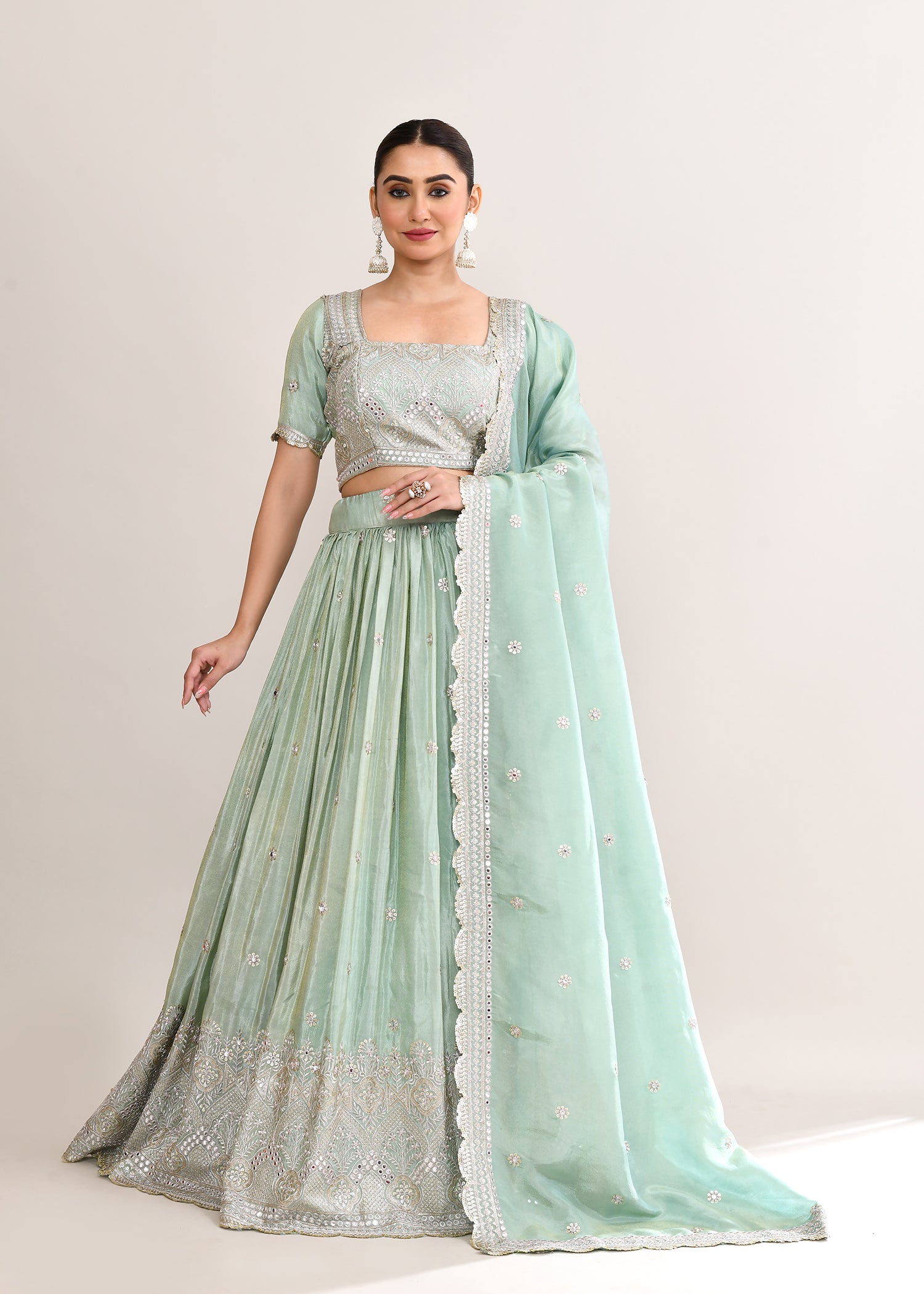 Pastel Soft Green Shimmer Embroidered Lehenga Set