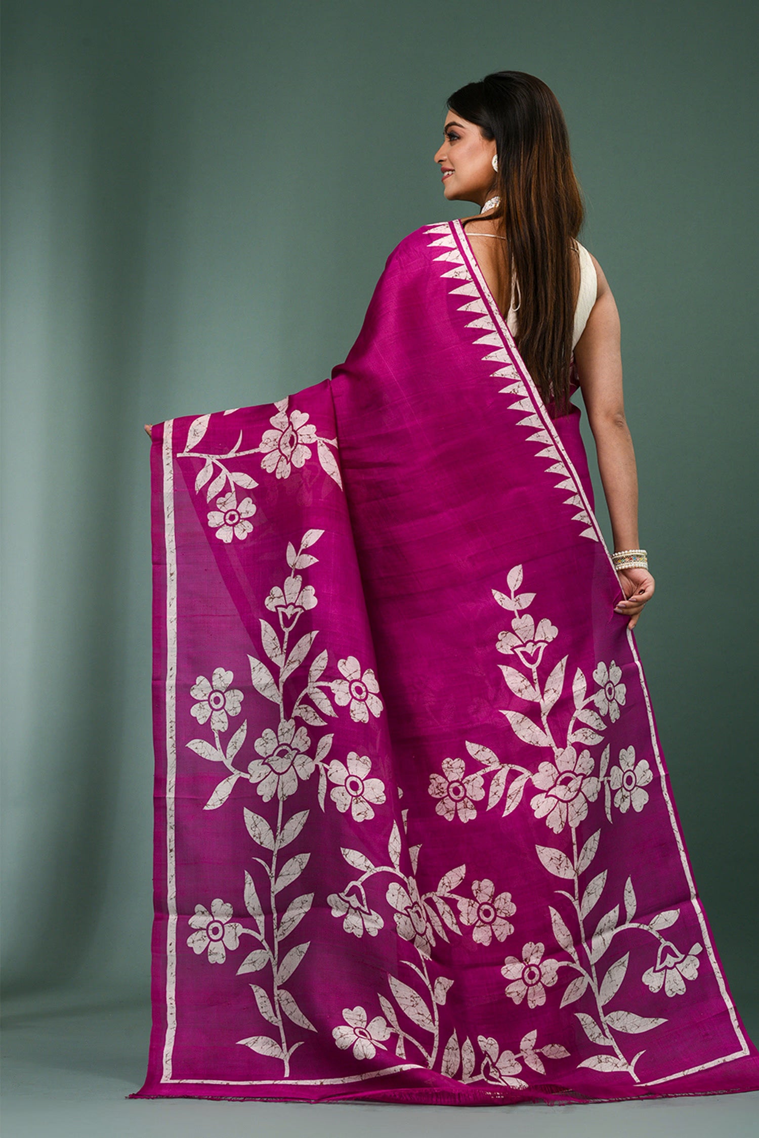 Pair with minimal jewellery and soft makeup to highlight the timeless elegance Singhania’s is known for.
