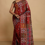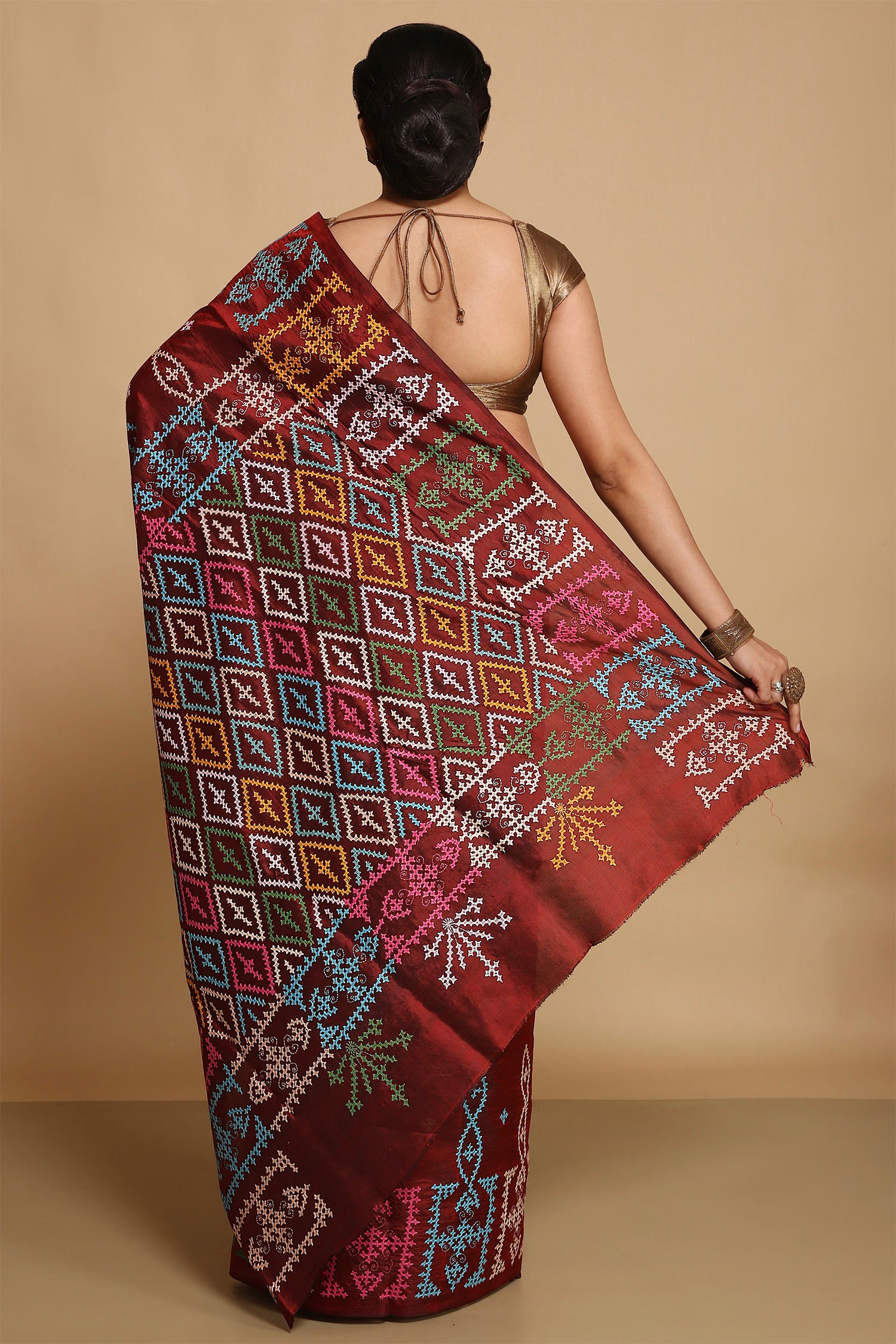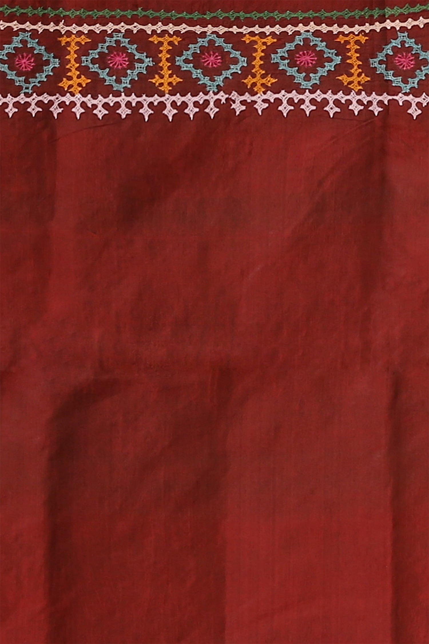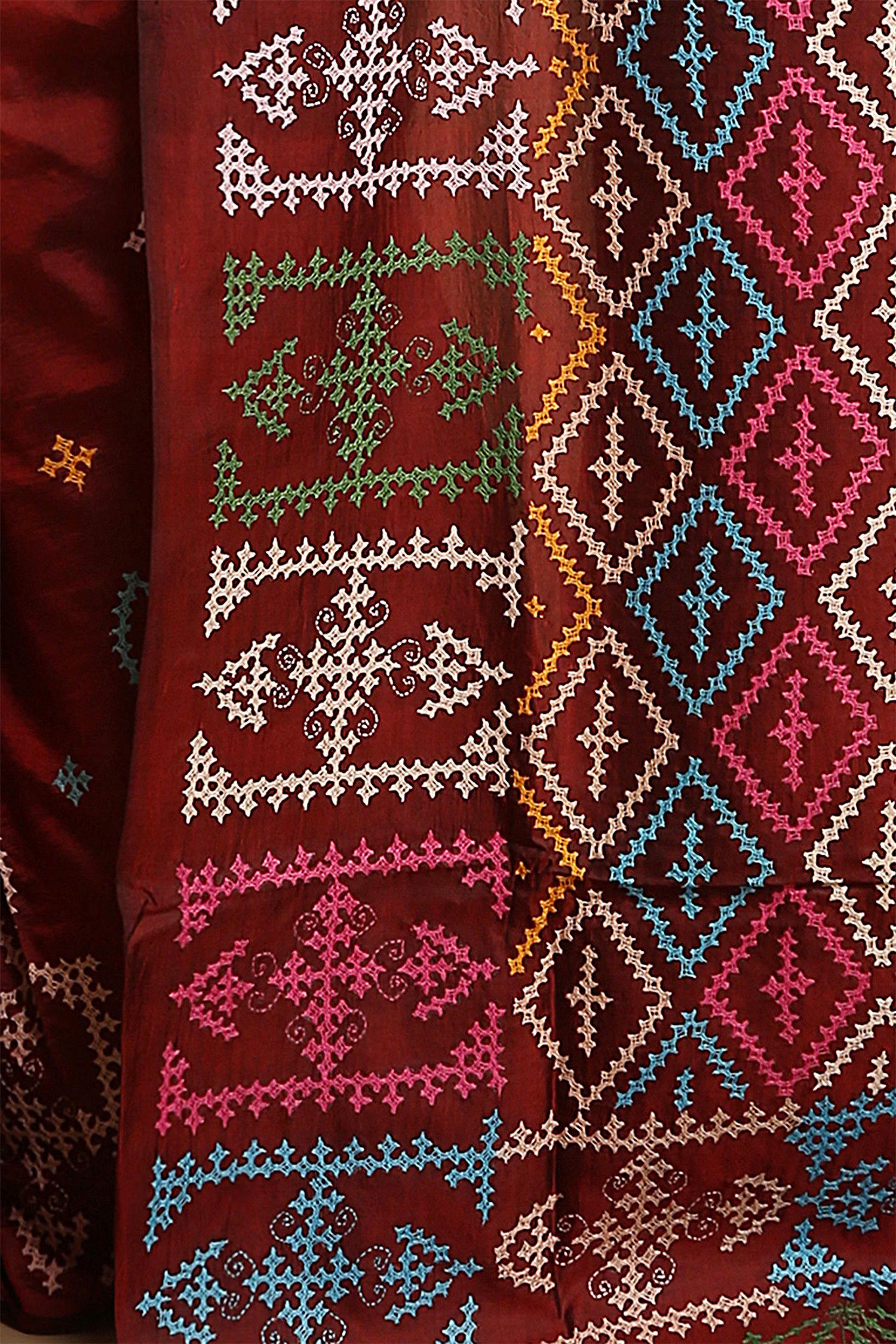 This manually gujarati handcrafted presented on entire Metallic copper pure bangalore silk saree which would light up every moment when you drape yourself with this .