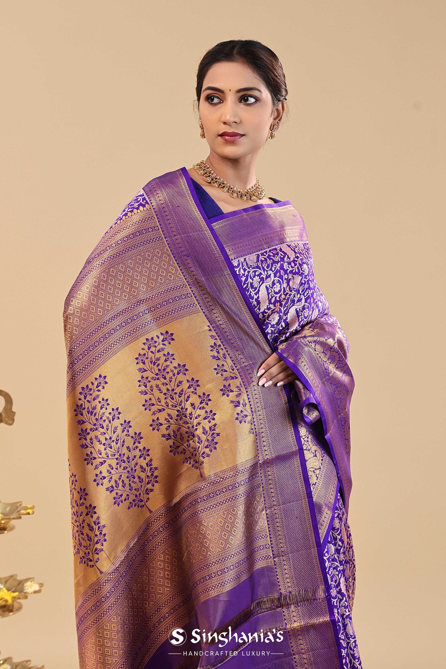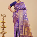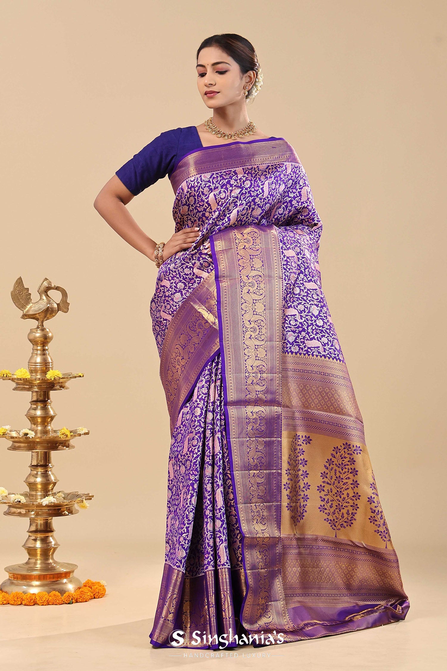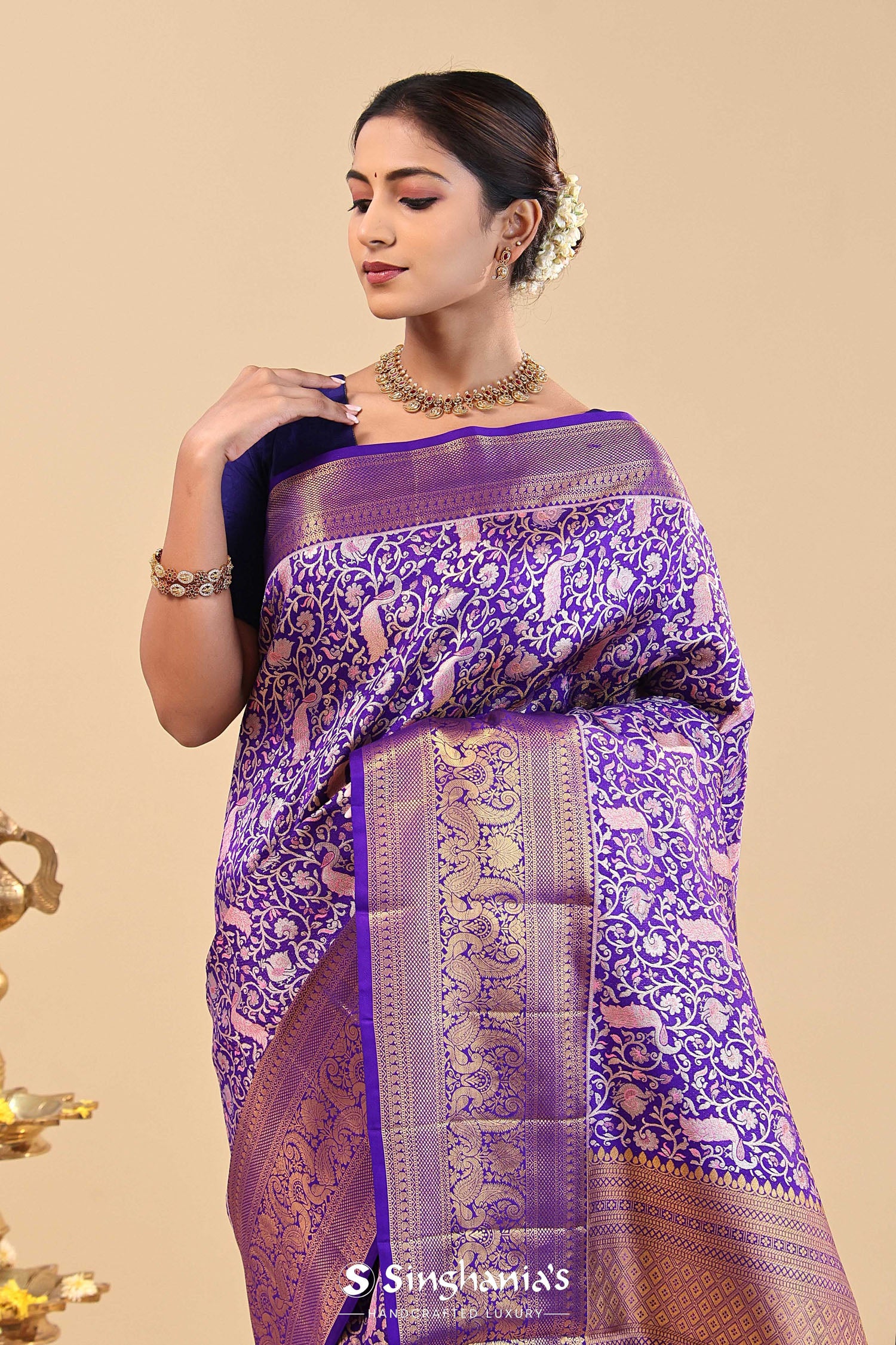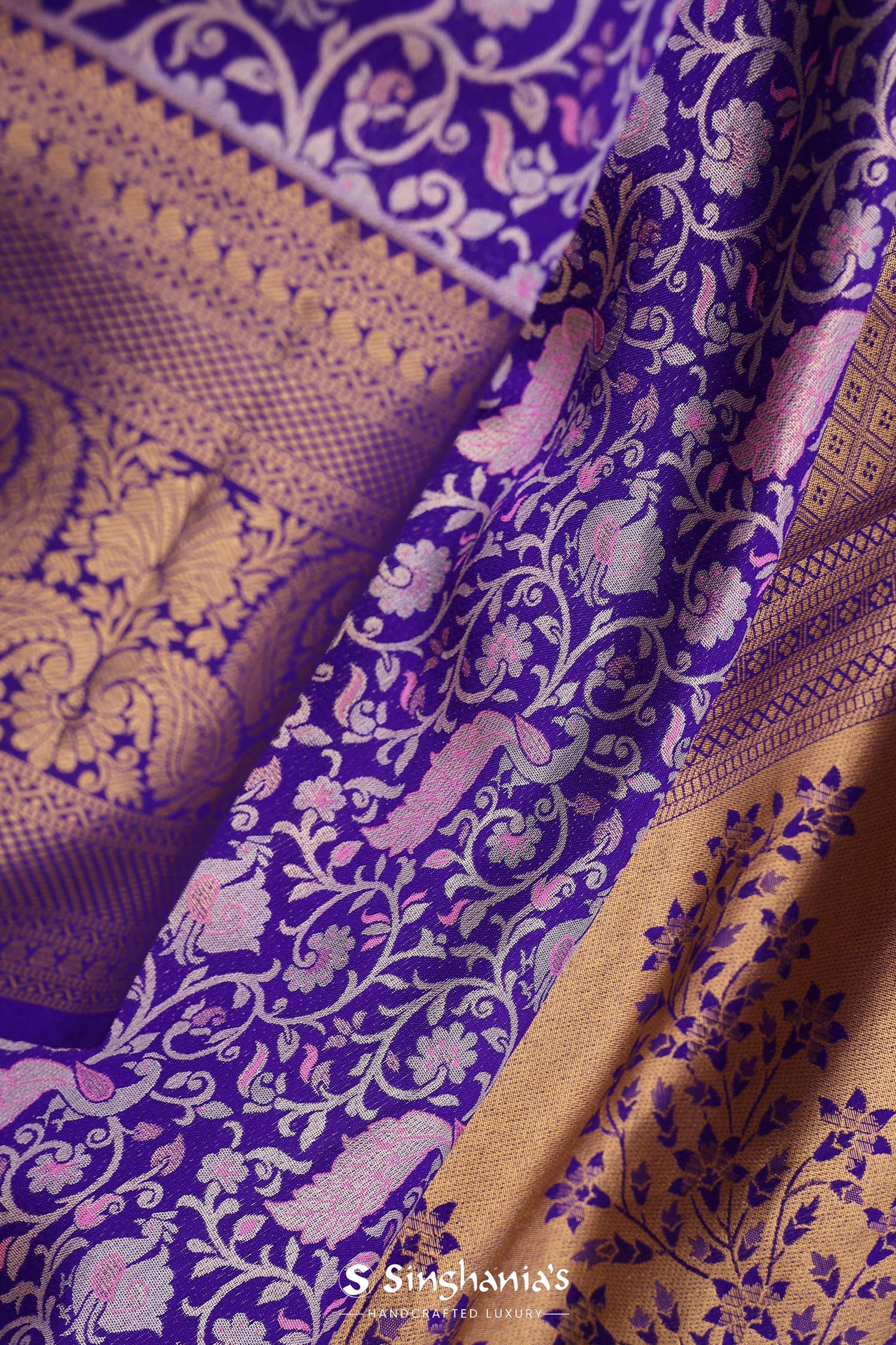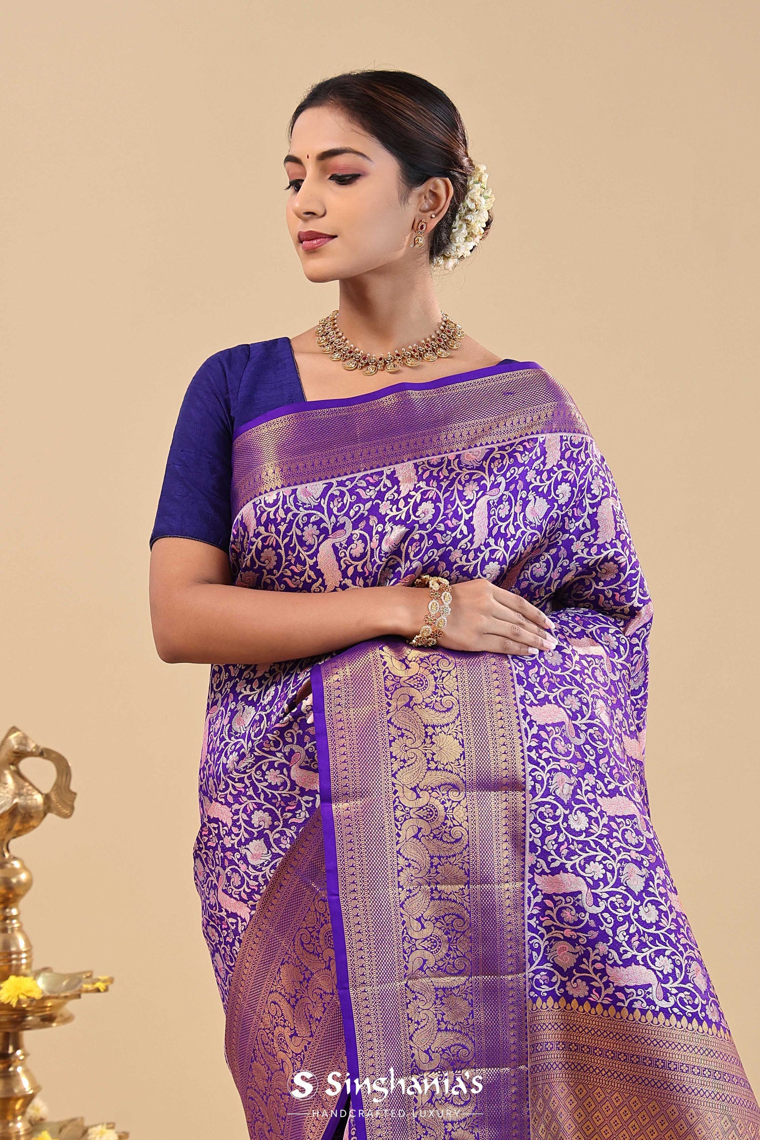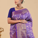 The floral and leaf jaal along with peacock spread all across the body along with big self border .This saree brings richness from colour and amazing detailing work done on the fabric , which would light up every moment when you drape yourself with this .