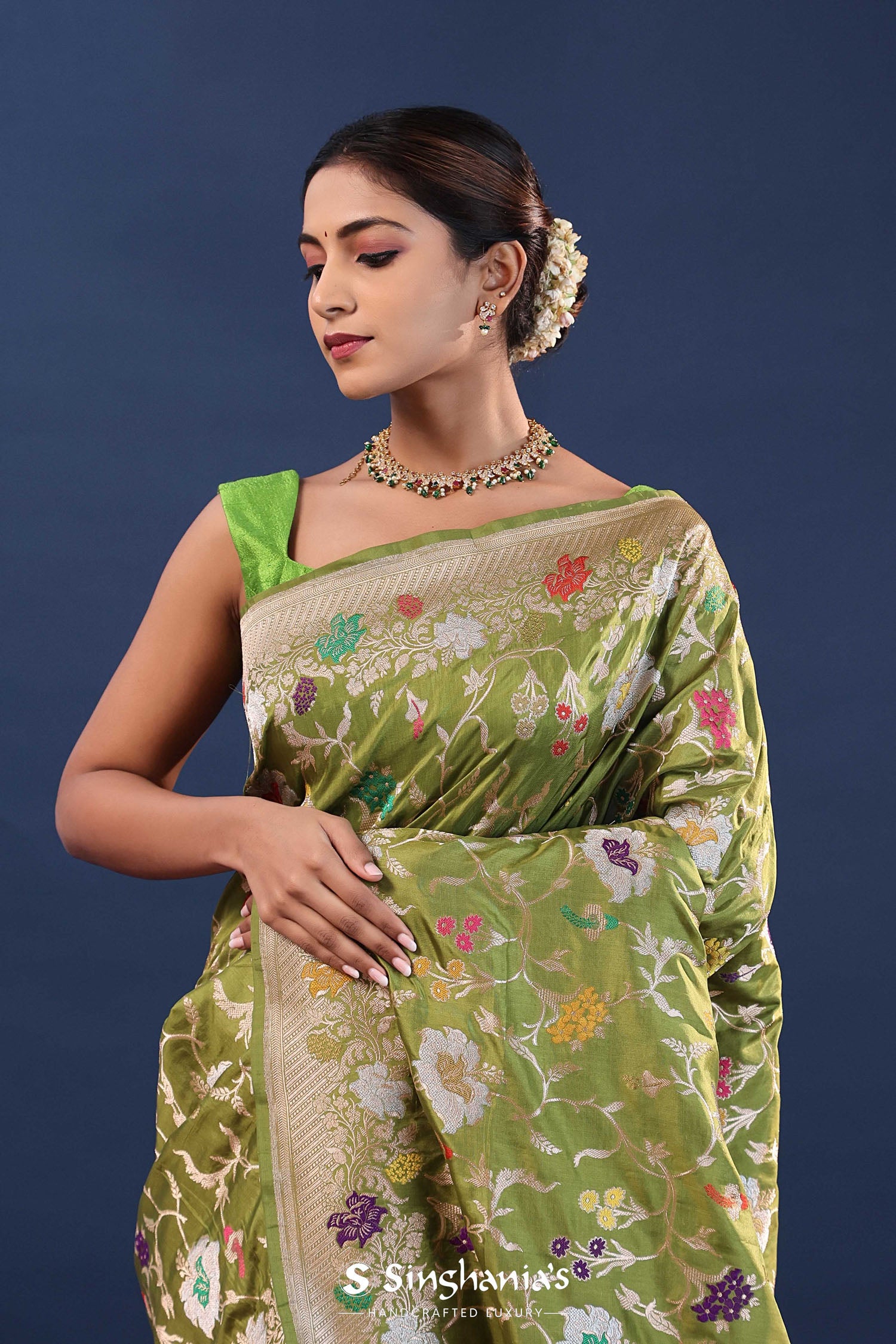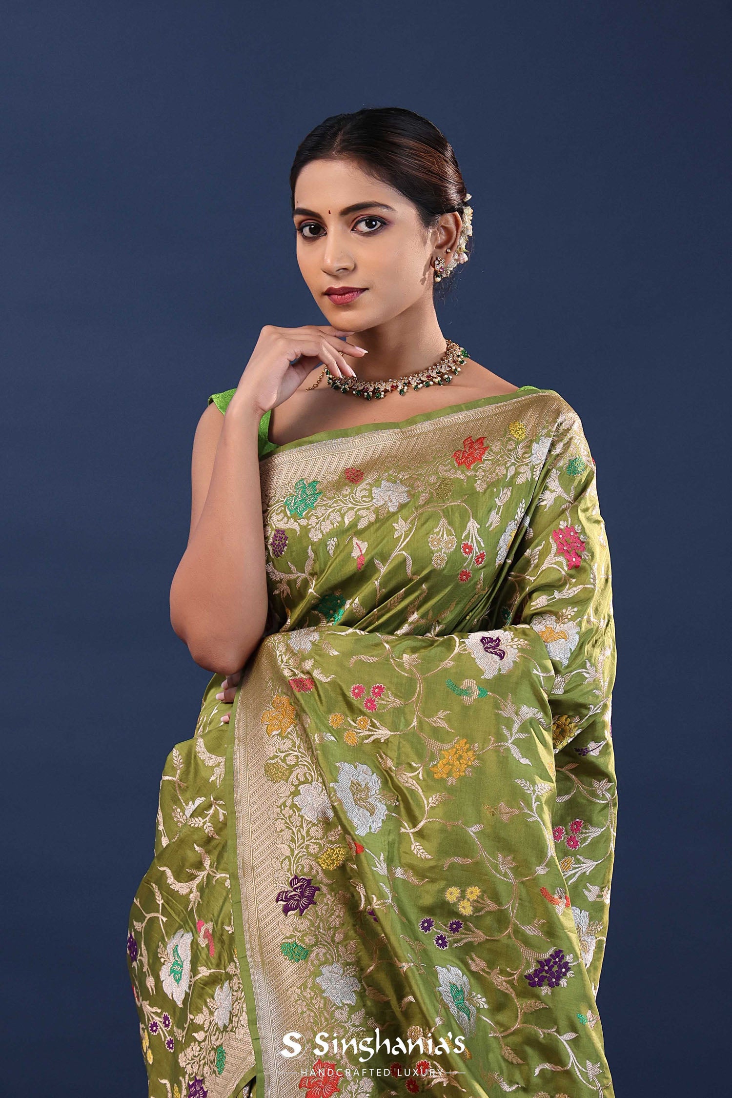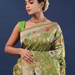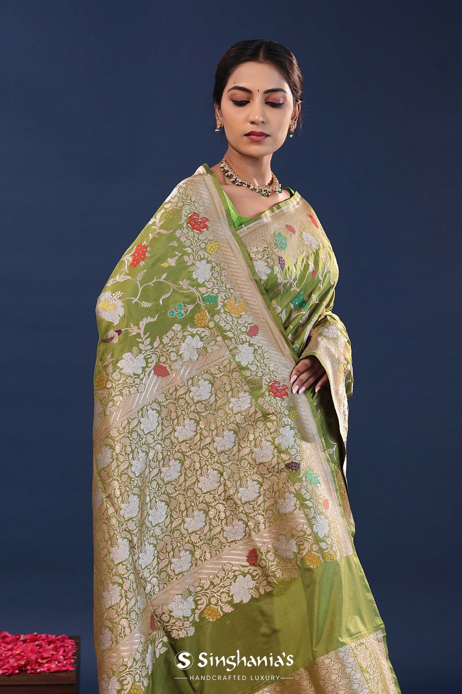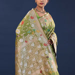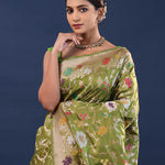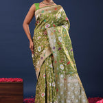 Woodland Green Banarasi Saree With Meenakari Jaal