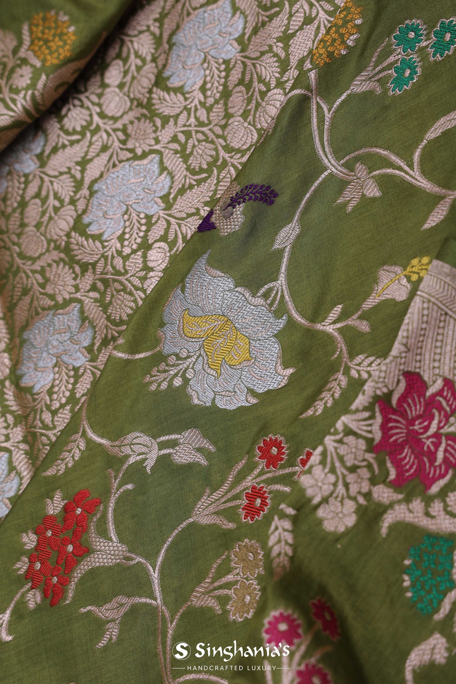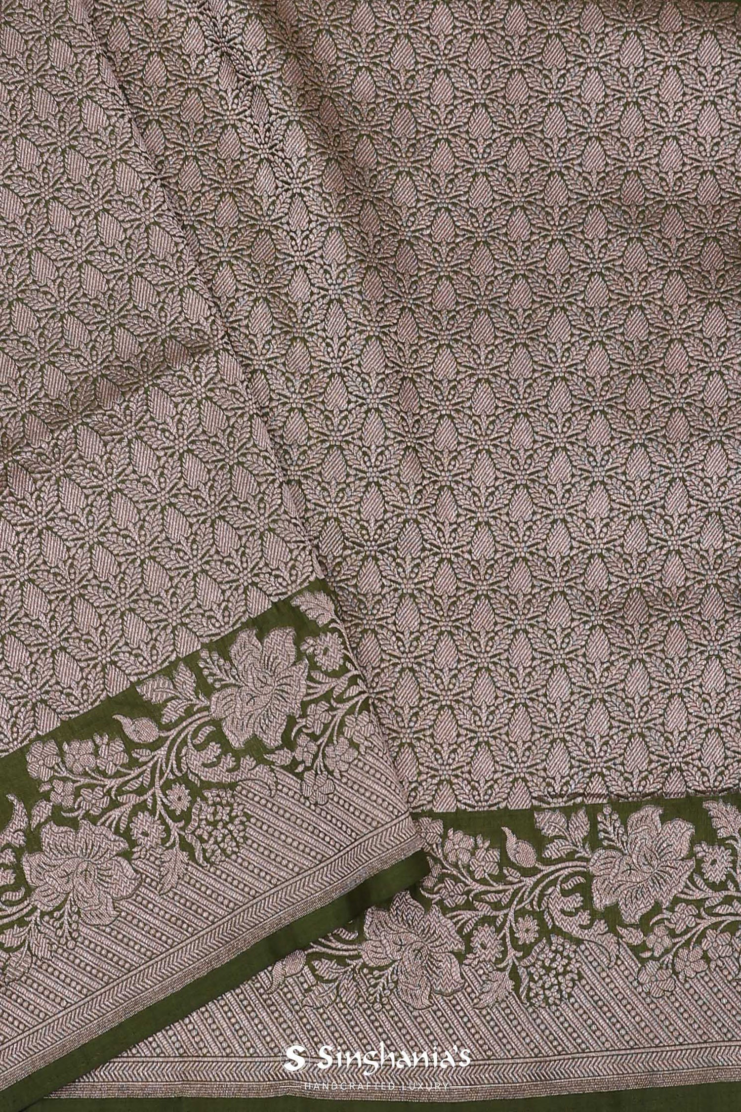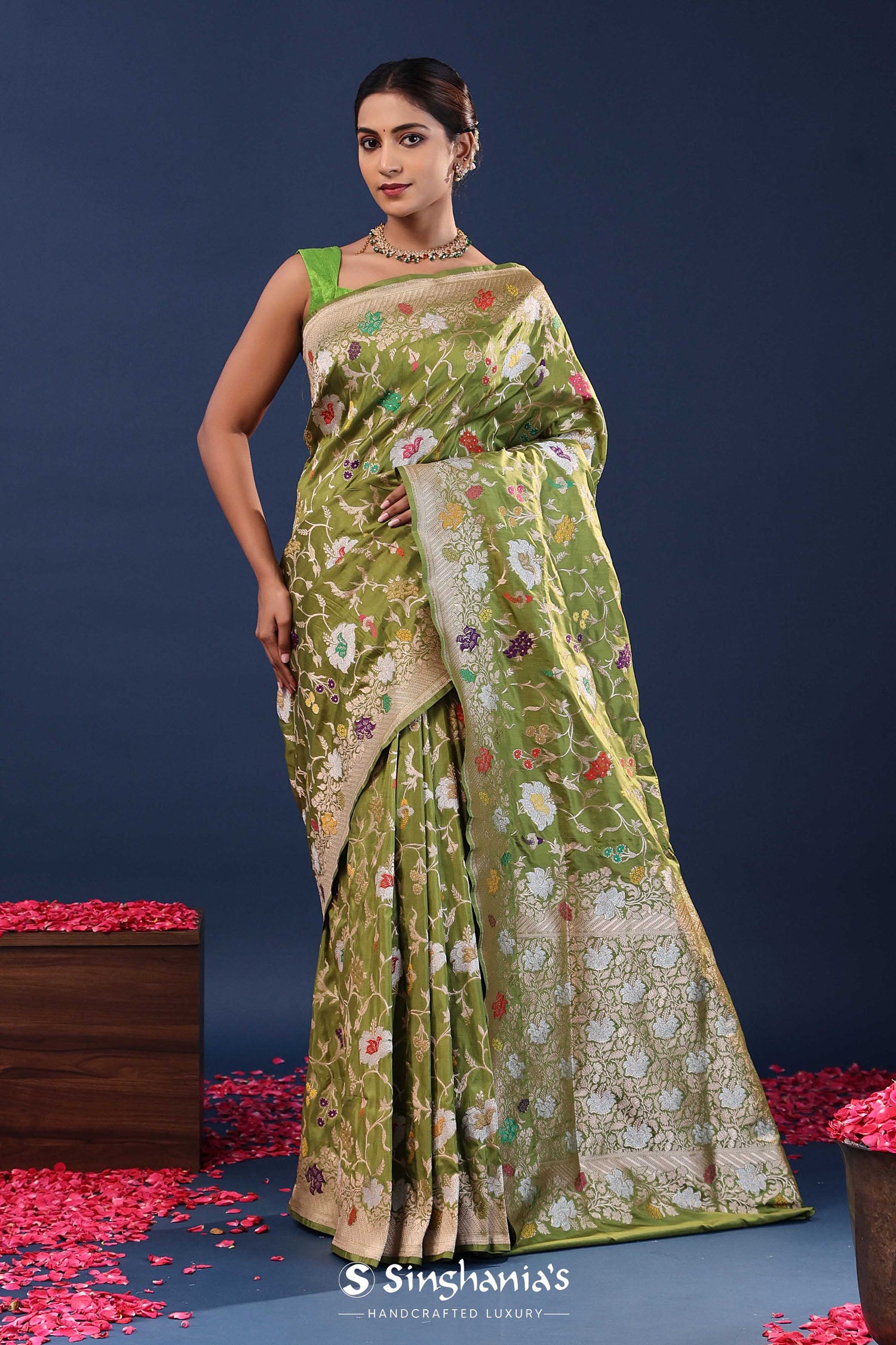 Woodland Green Banarasi Saree With Meenakari Jaal