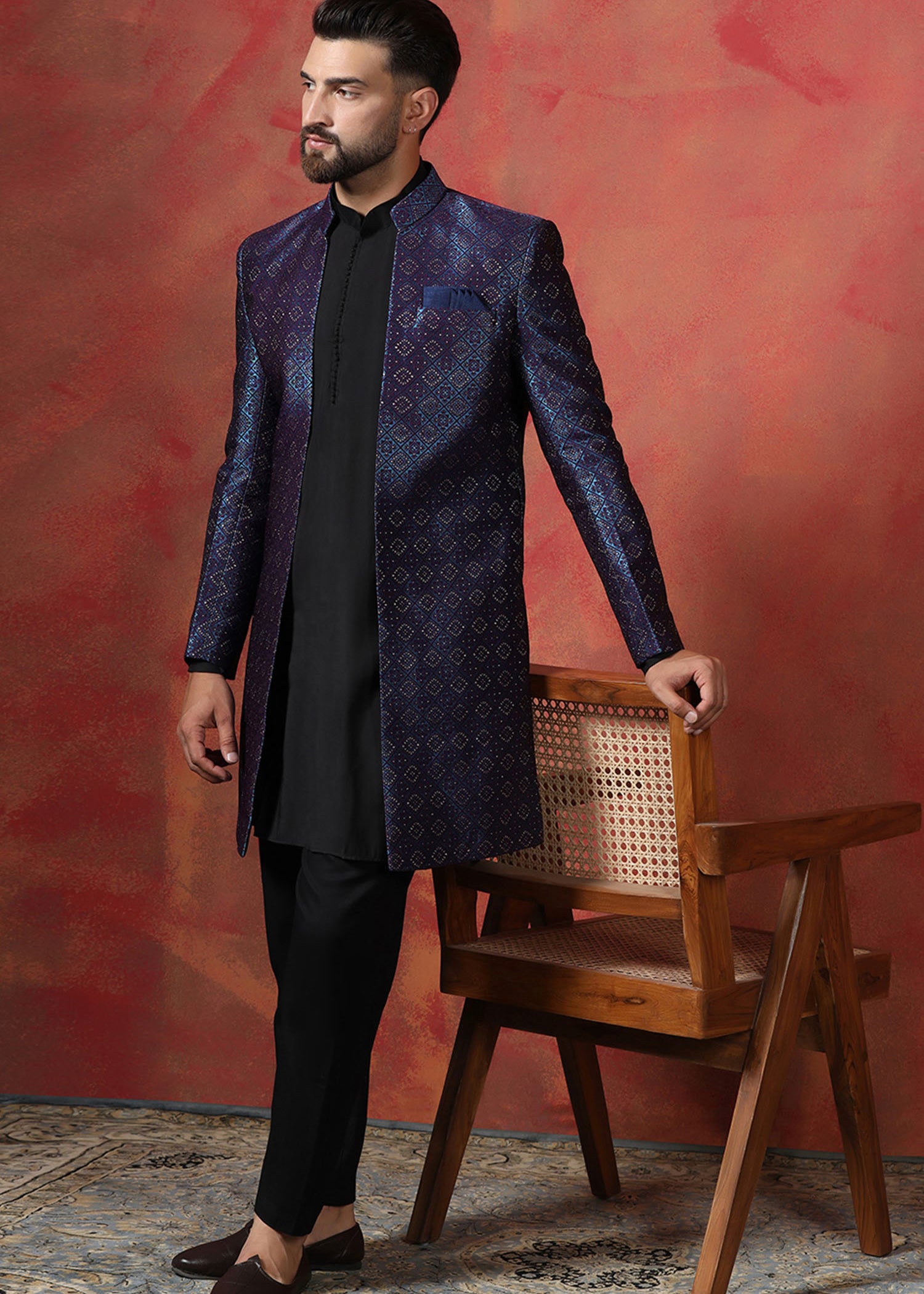 Black Jacquard Sherwani Set