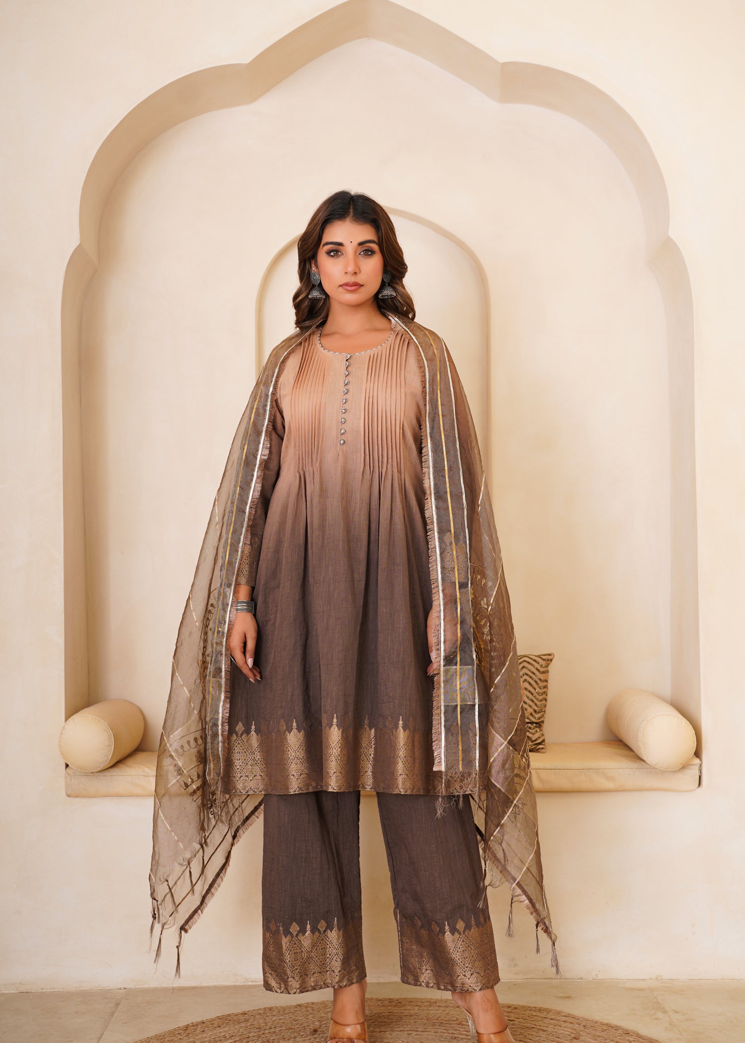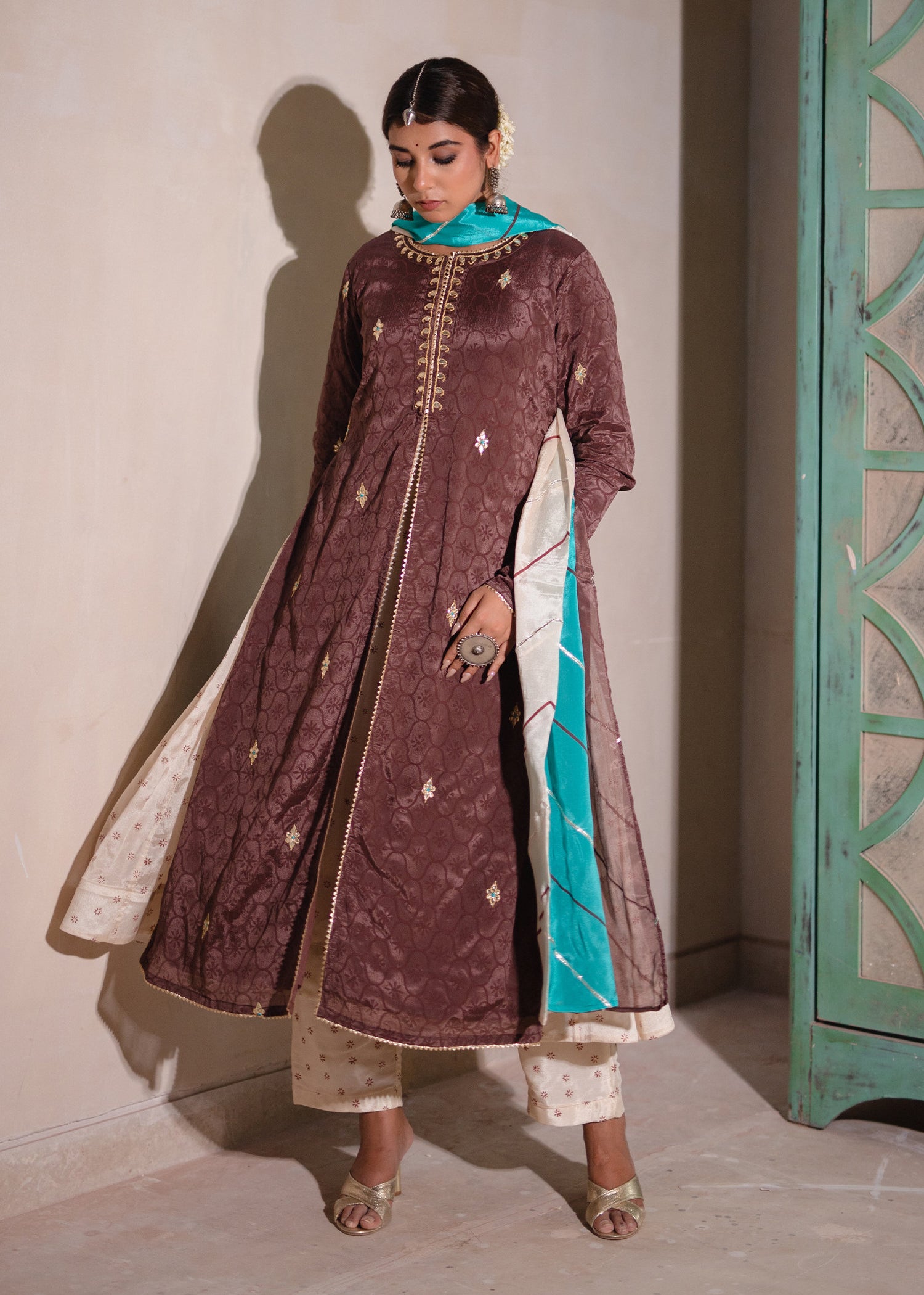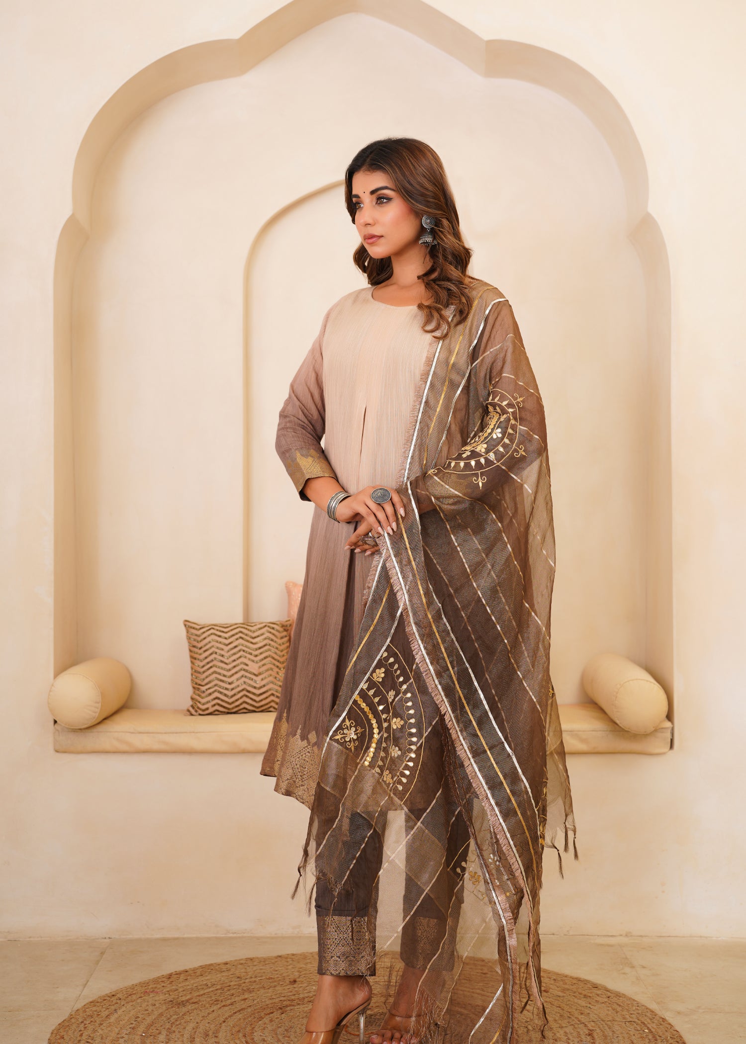 Beautiful Mocha Gotta Patti Kurti Set With Dupatta