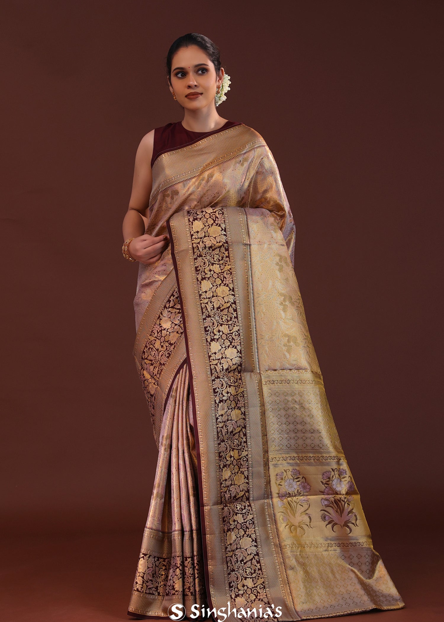 Beige Kanjivaram Tissue Saree With Contrast Dark Brown Border
