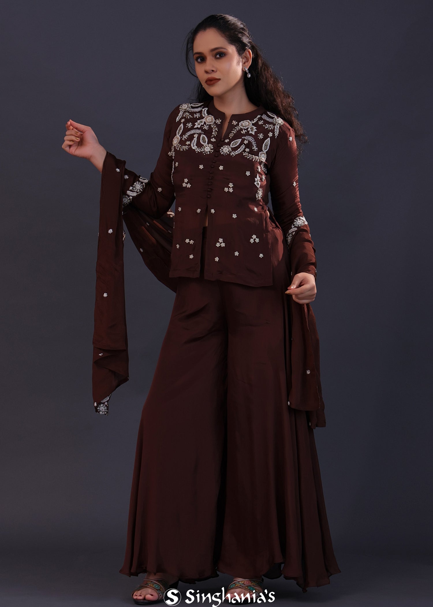 Chocolate Brown Raw Silk Kurti And Palazzo Set