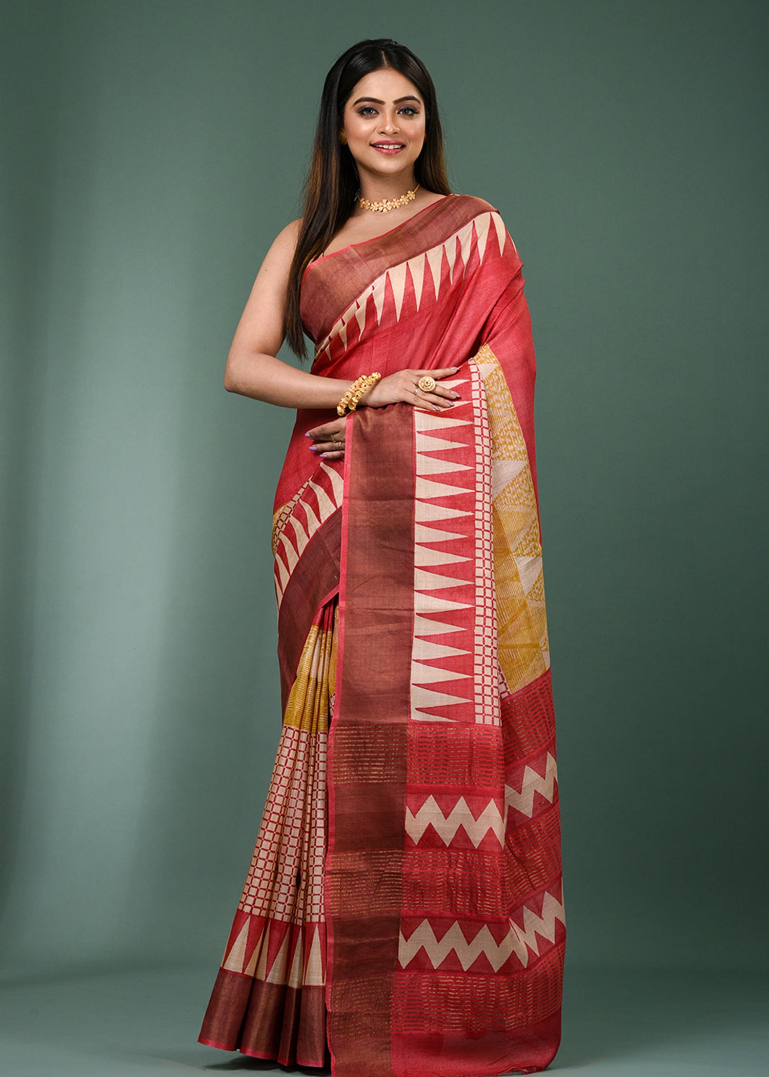 Red Kanjivaram Tissue Saree With Rangkat Design