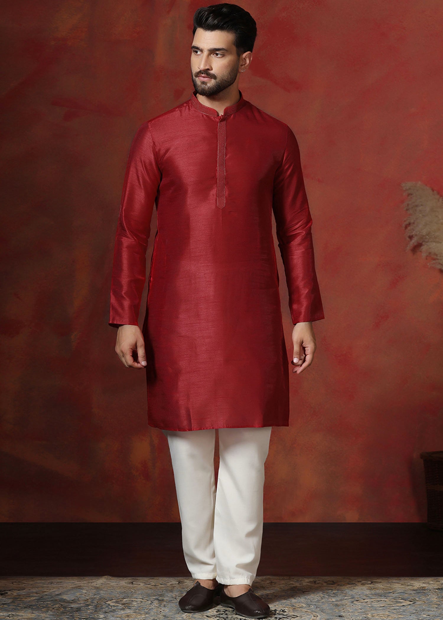 Red Hand Embroidery With Block Printed Straight Kurta And Palazzo