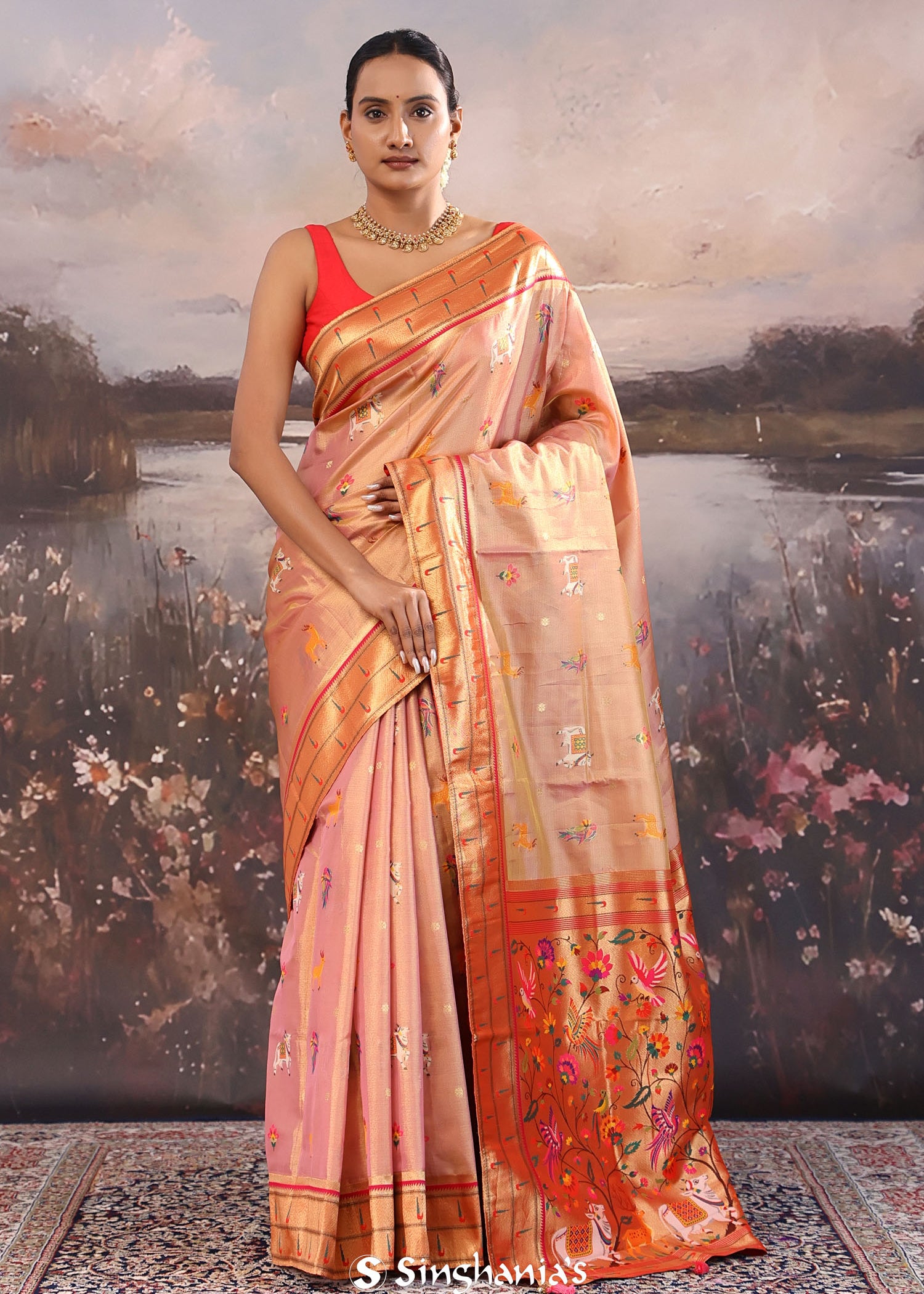 Dark Peach Paithani Saree With Animal Motifs