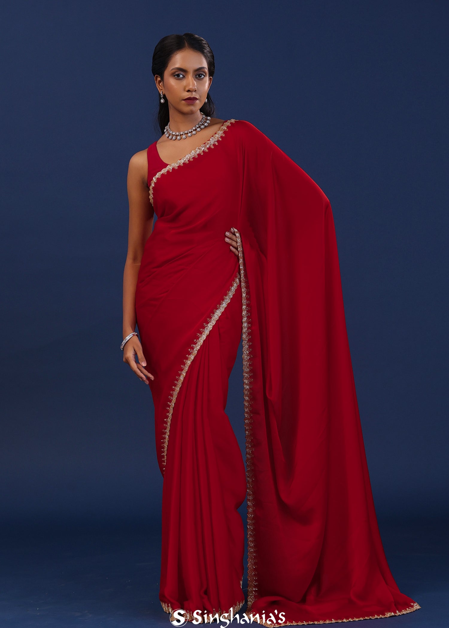 Opium Pinkish Red Organza Tissue Saree With Scallop Border
