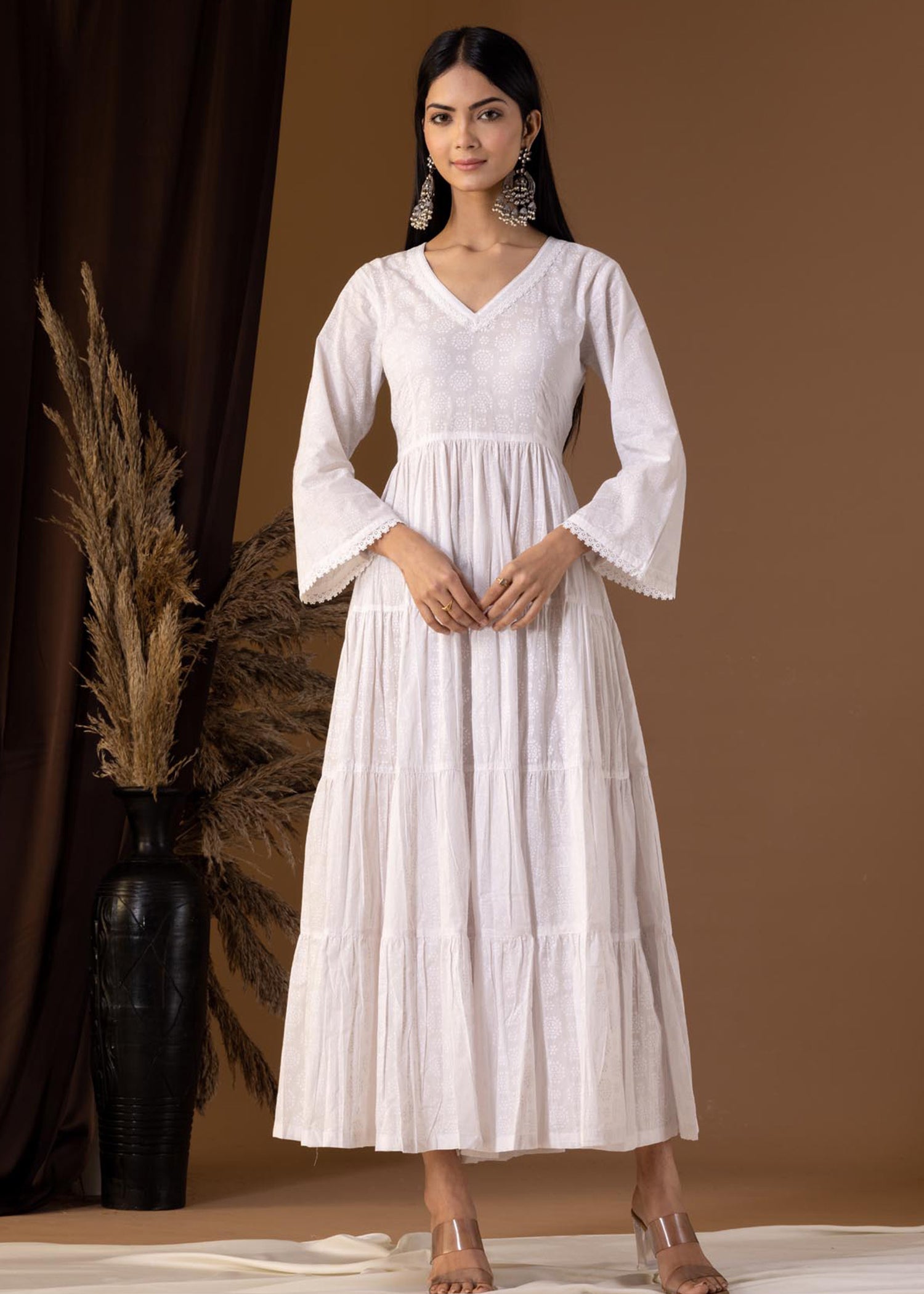 Khadi Printed White Cotton Cambric Dress