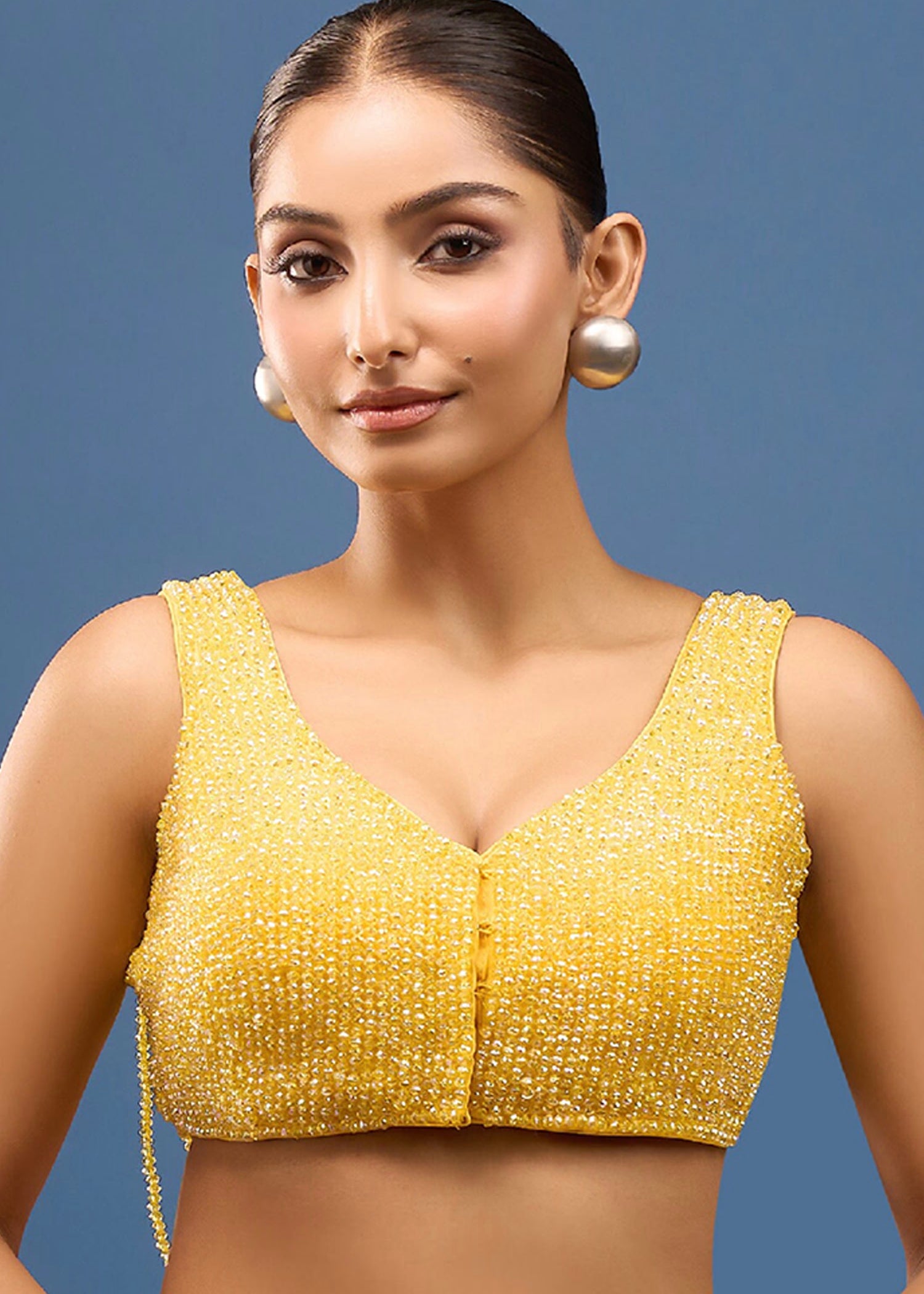 Bright Yellow Net Embroidered Blouse
