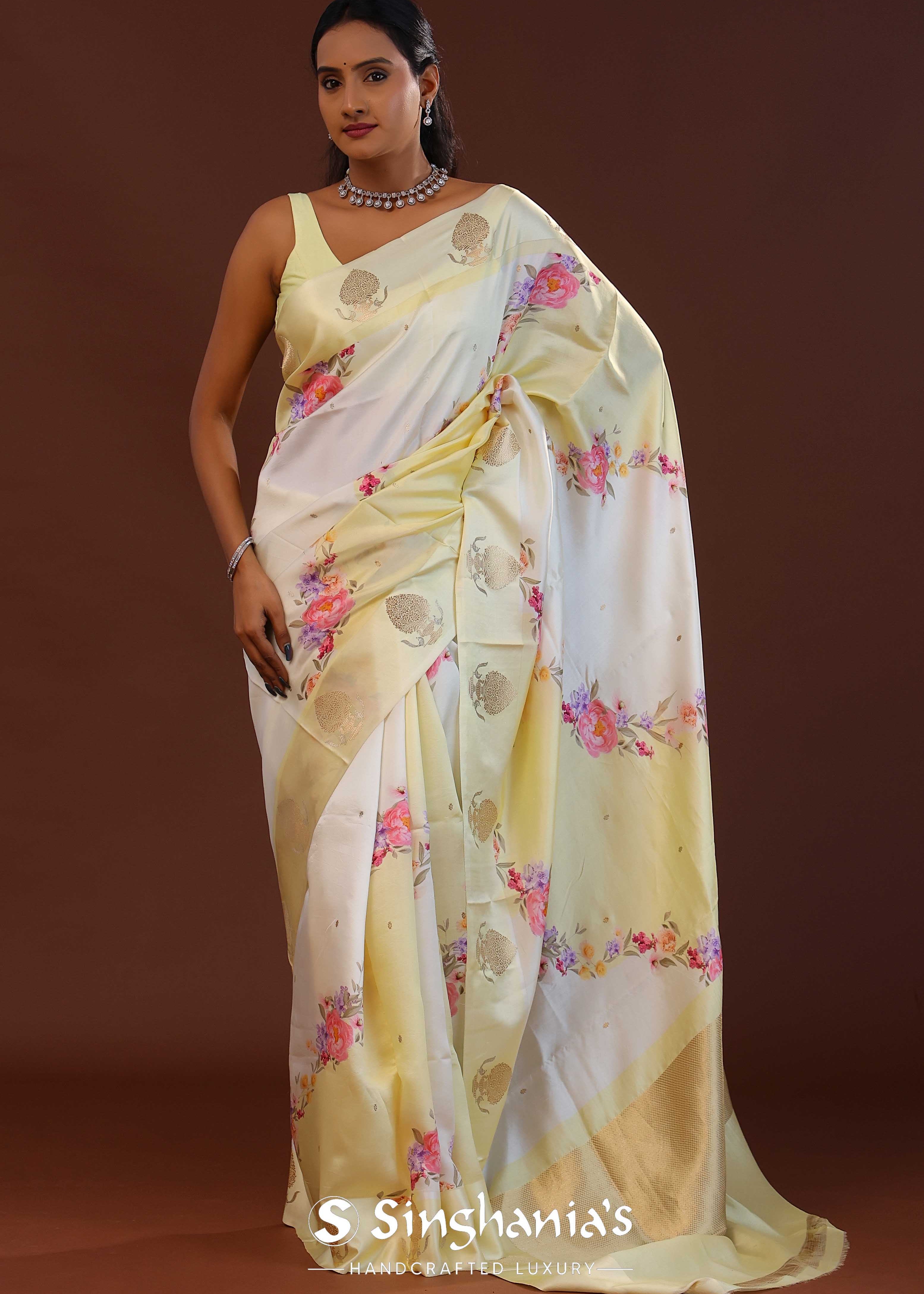 Cyber Yellow Banarasi Silk Saree With Meenakari Design