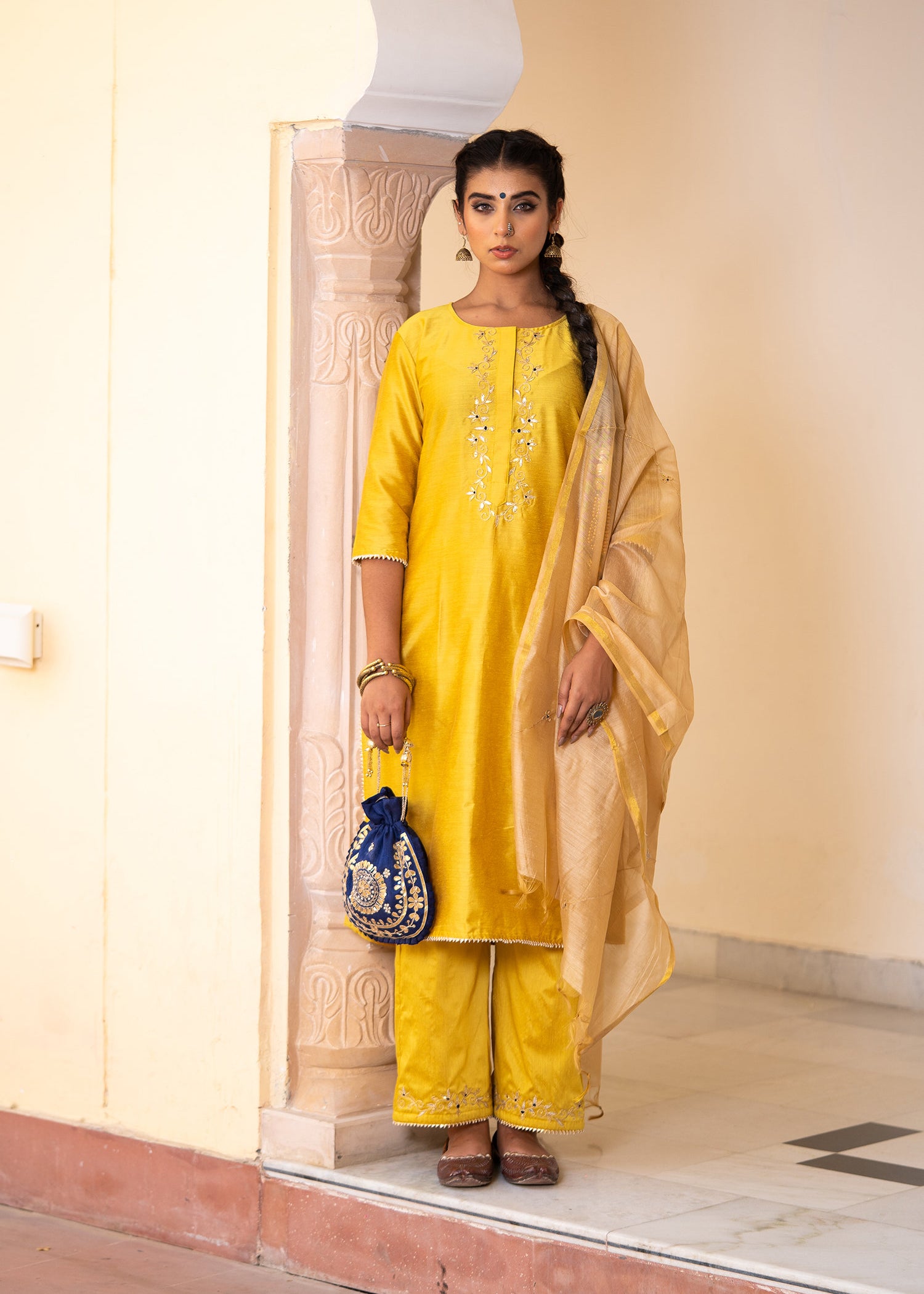 Minted Yellow Cotton Silk Gota Patti Suit Set