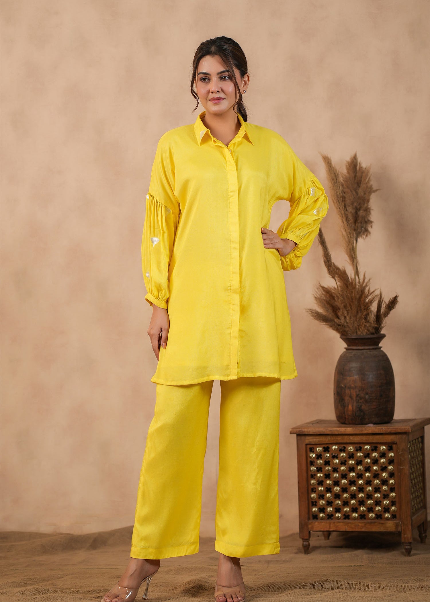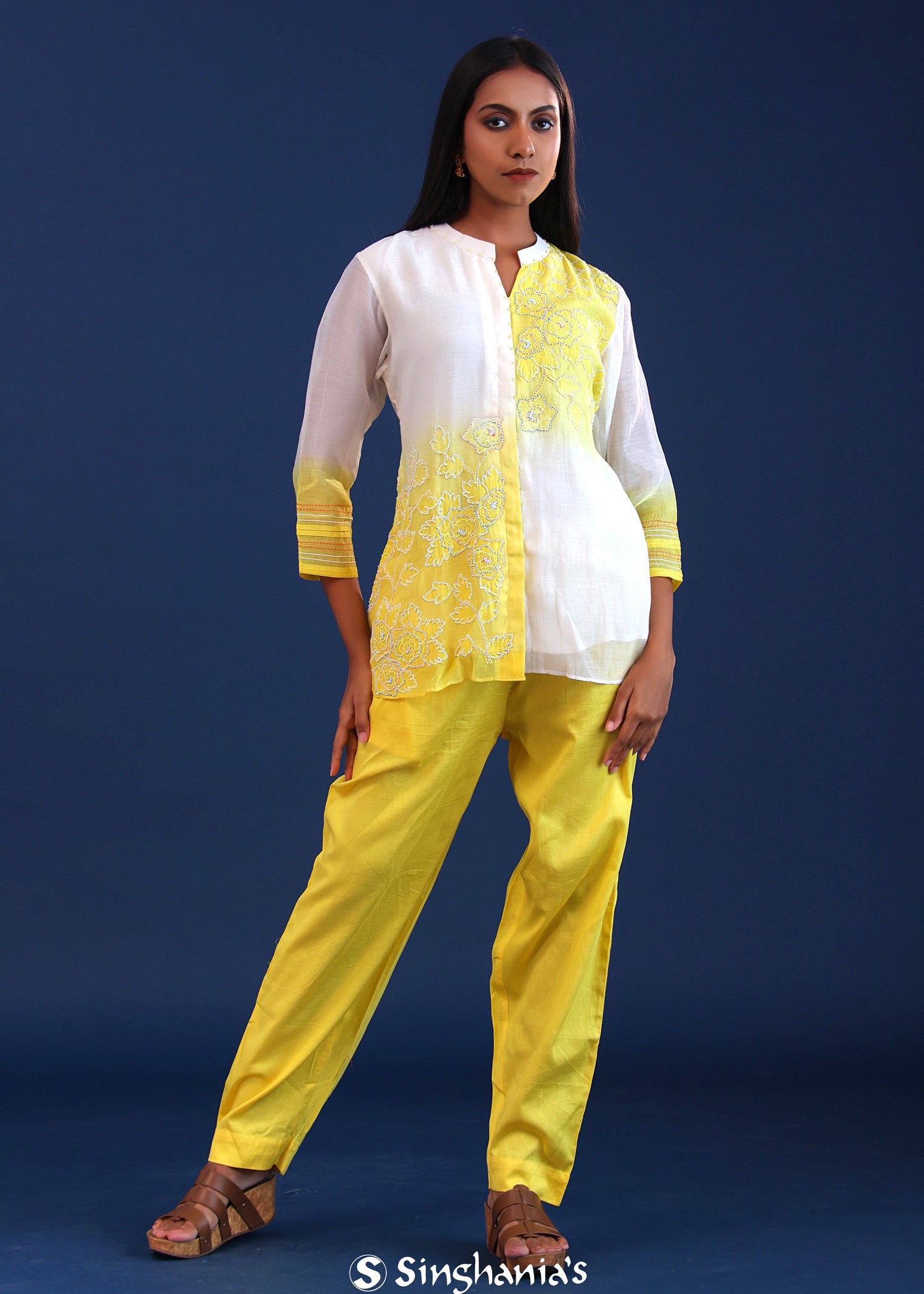 Light Yellow And White Mul Chanderi Co-Ord Set