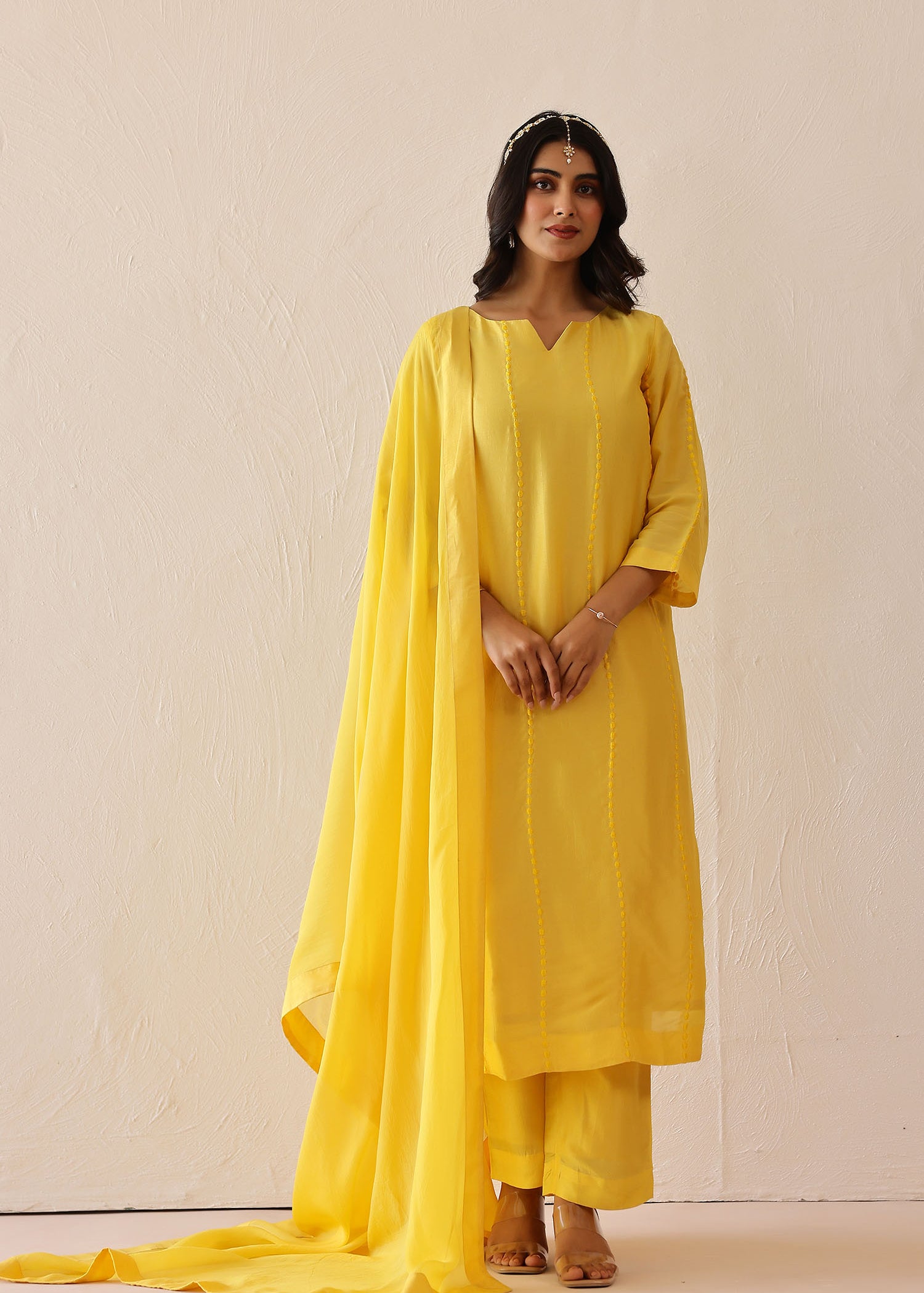 Light Lemon Yellow Russian Silk Solid Kurti Set