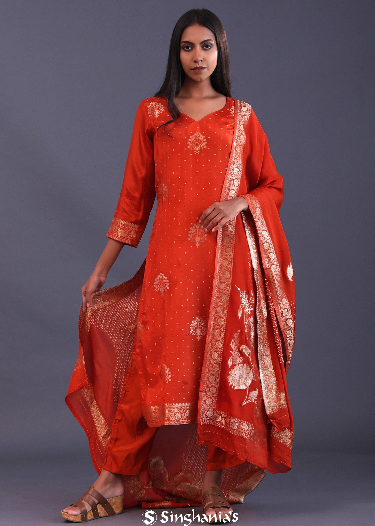 Cardinal Red Heritage Kanjivaram Silk Saree