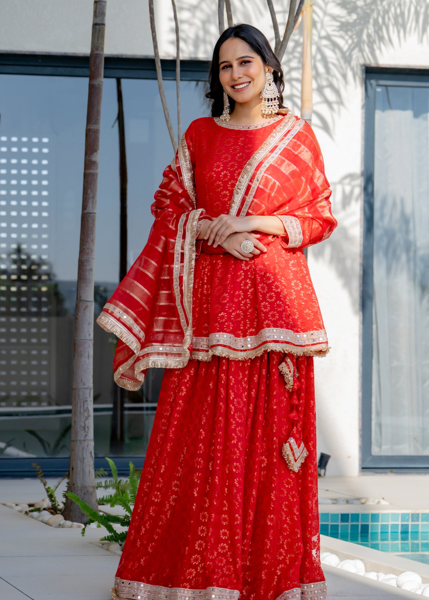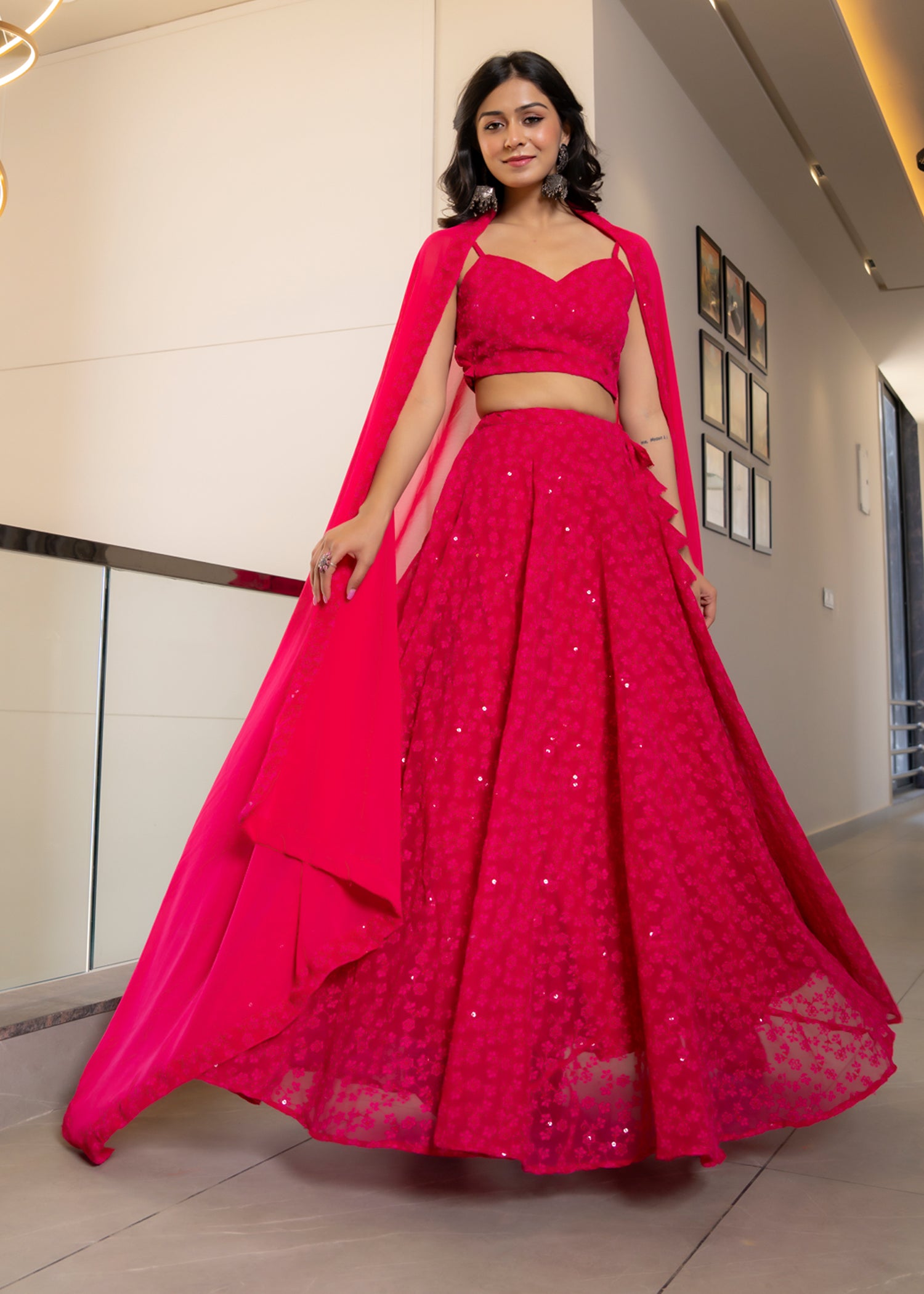 Cardinal Pink Georgette Chikankari Lehenga Set