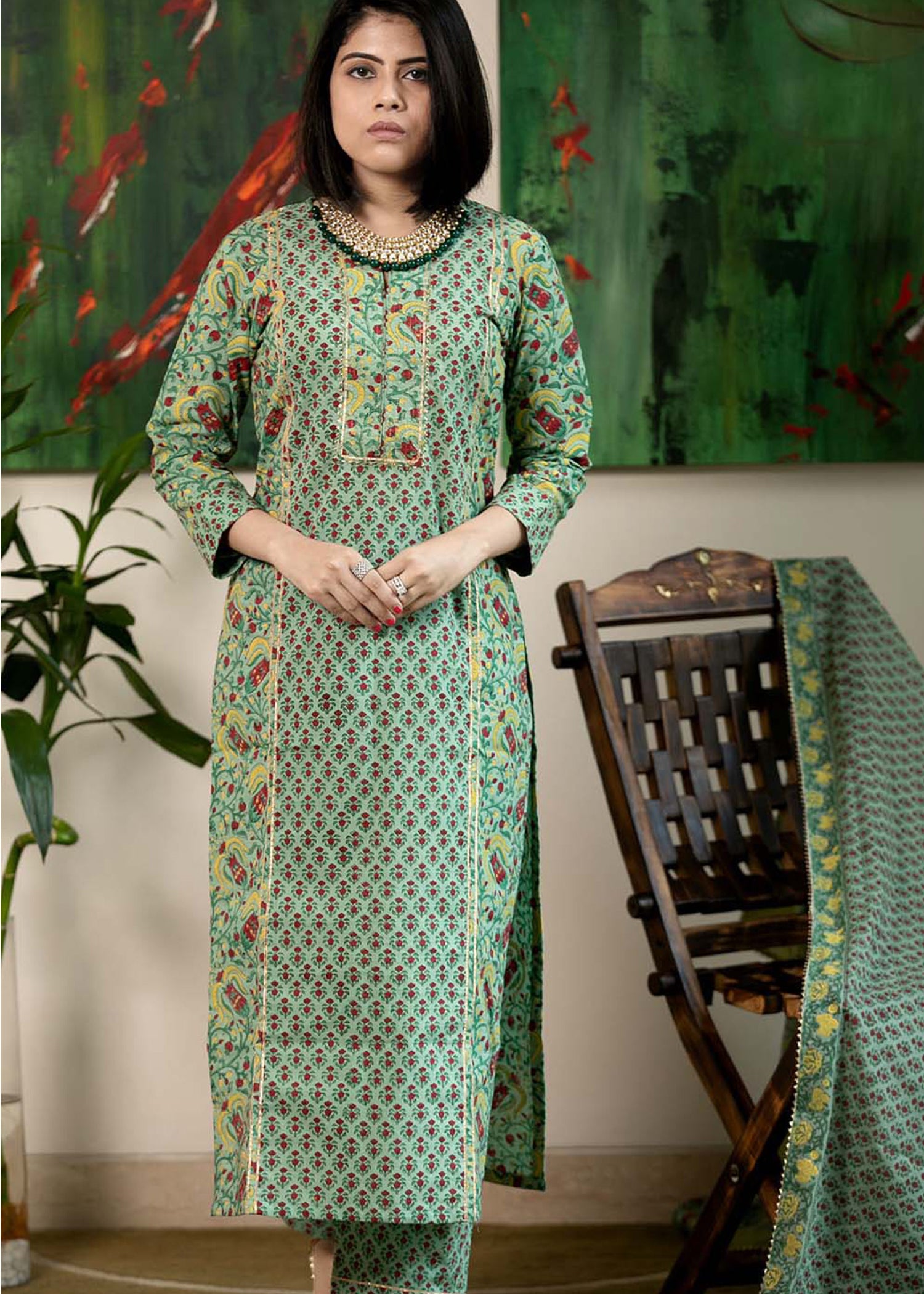 Dark Green Cotton Silk Gotta Work Anarkali Set