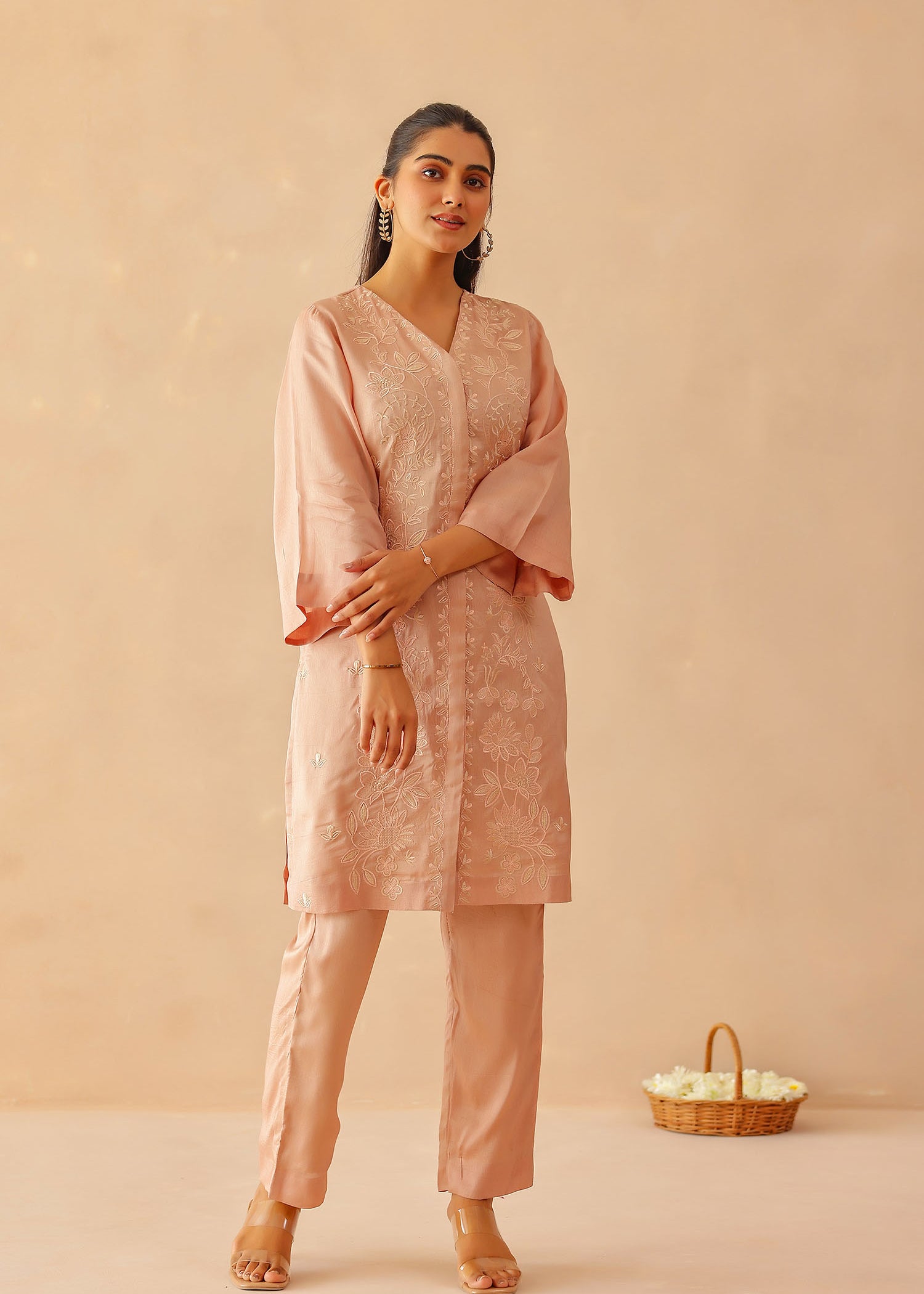 Dusty Pink Russian Silk Embroidered Kurti Set