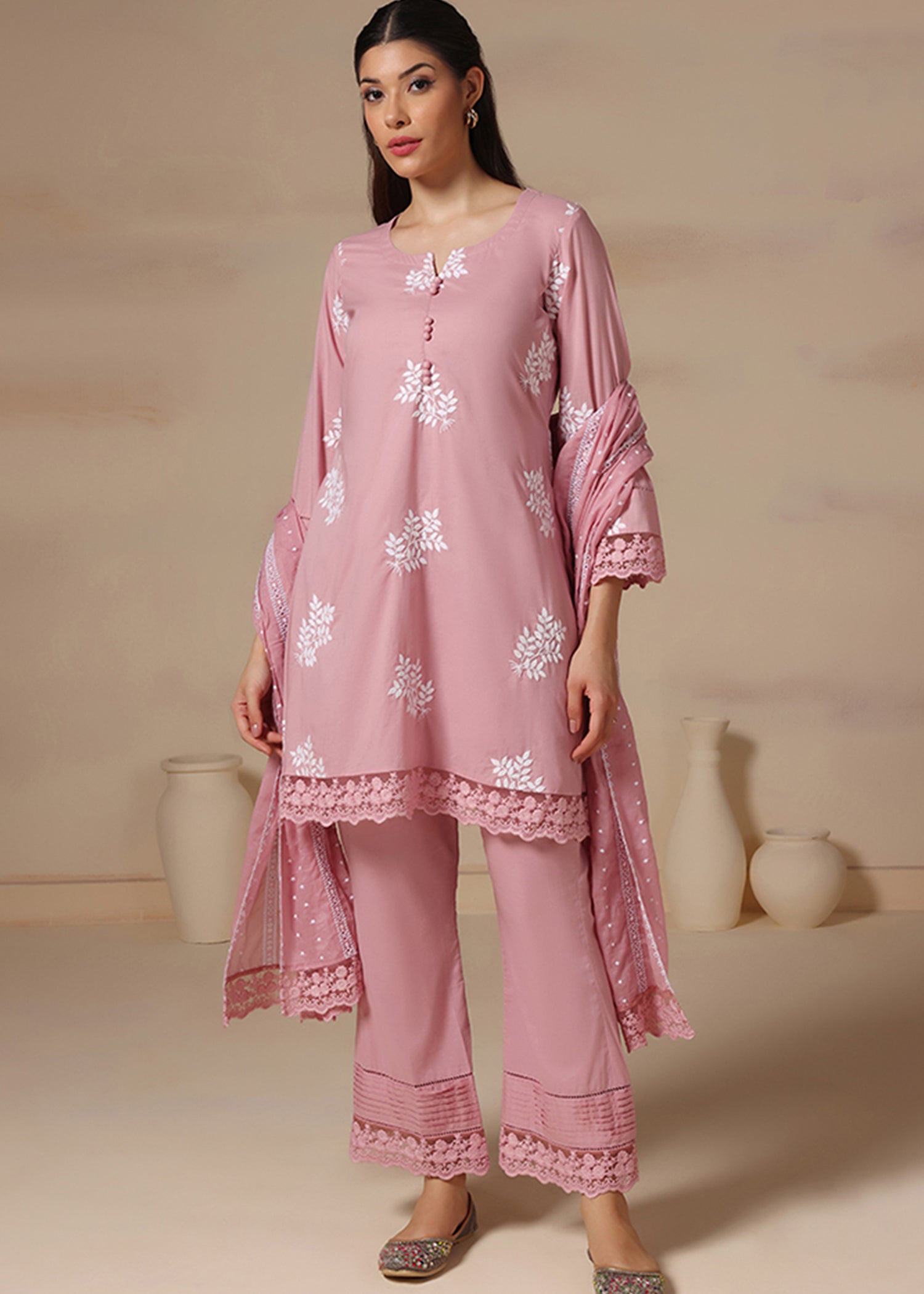 Dusty Pink Cotton Silk Embroidered Kurta Set