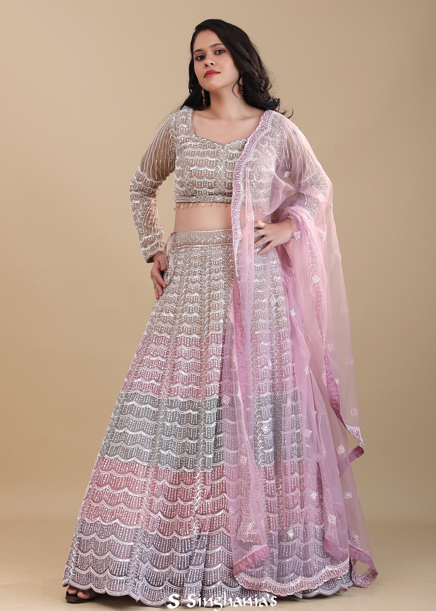 Beige Organza Embroidery Saree With Sequins And Kardana Detailing