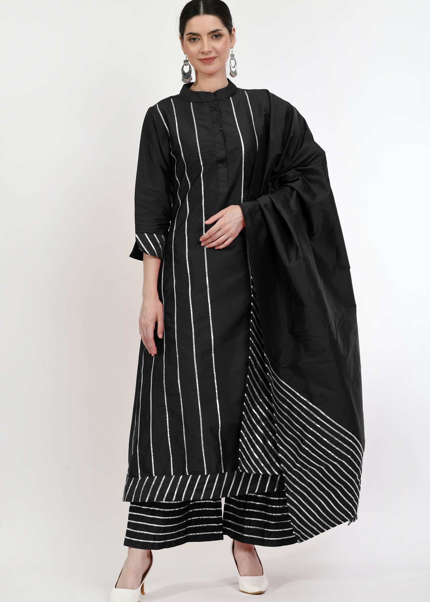 Black Banarasi Silk Saree Gold Zari Border And Butti'S
