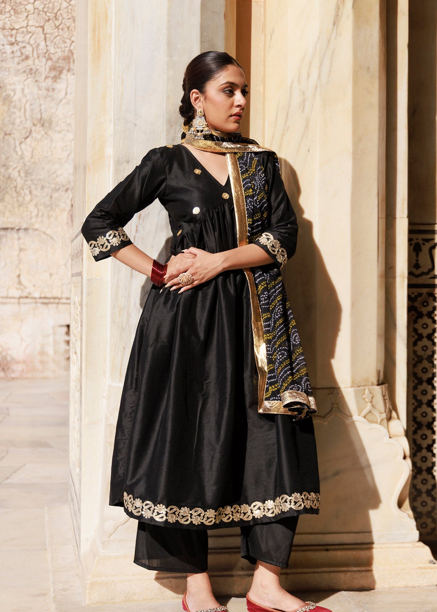 Black Cotton Silk Gota Embroidered Lehenga Set
