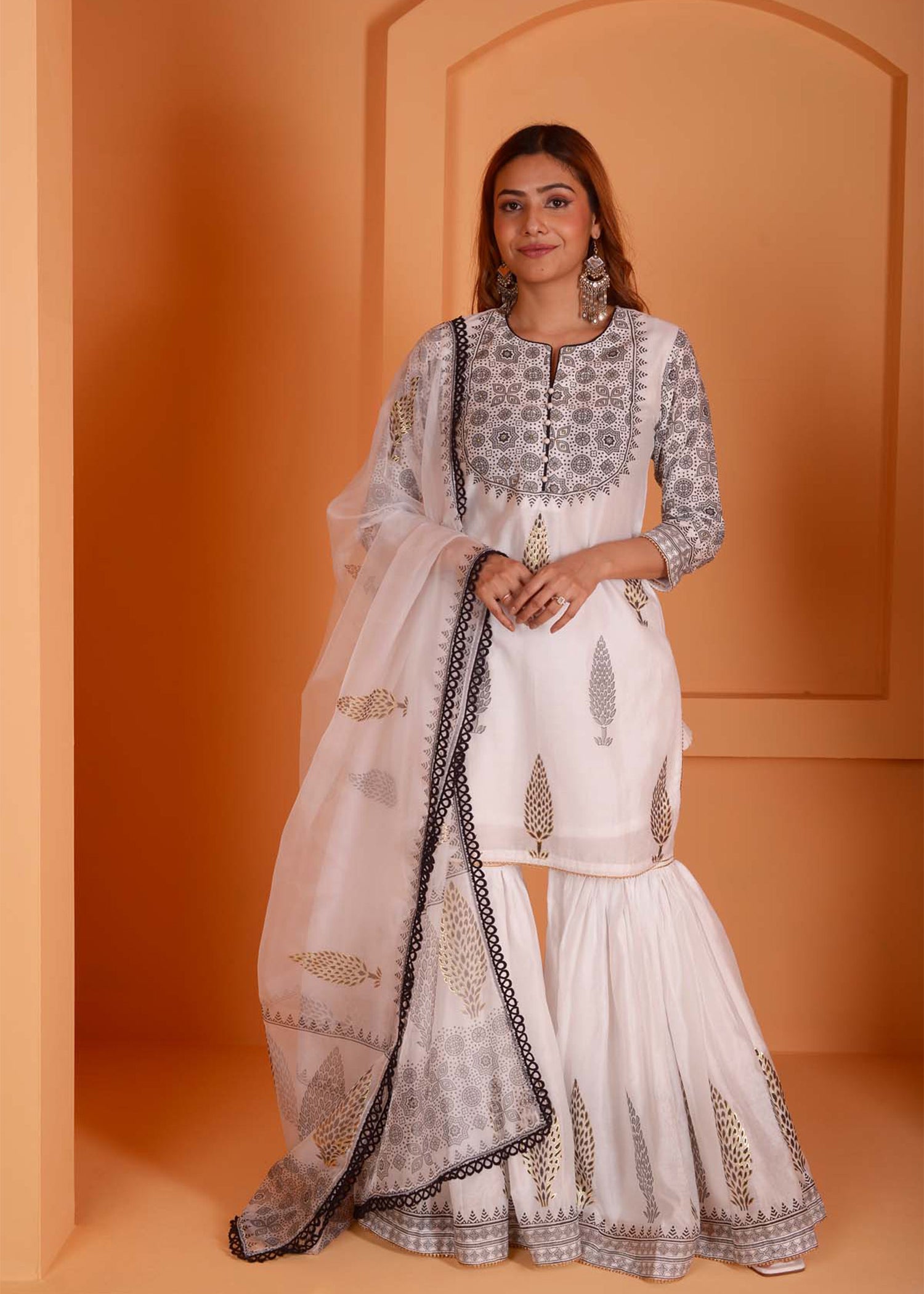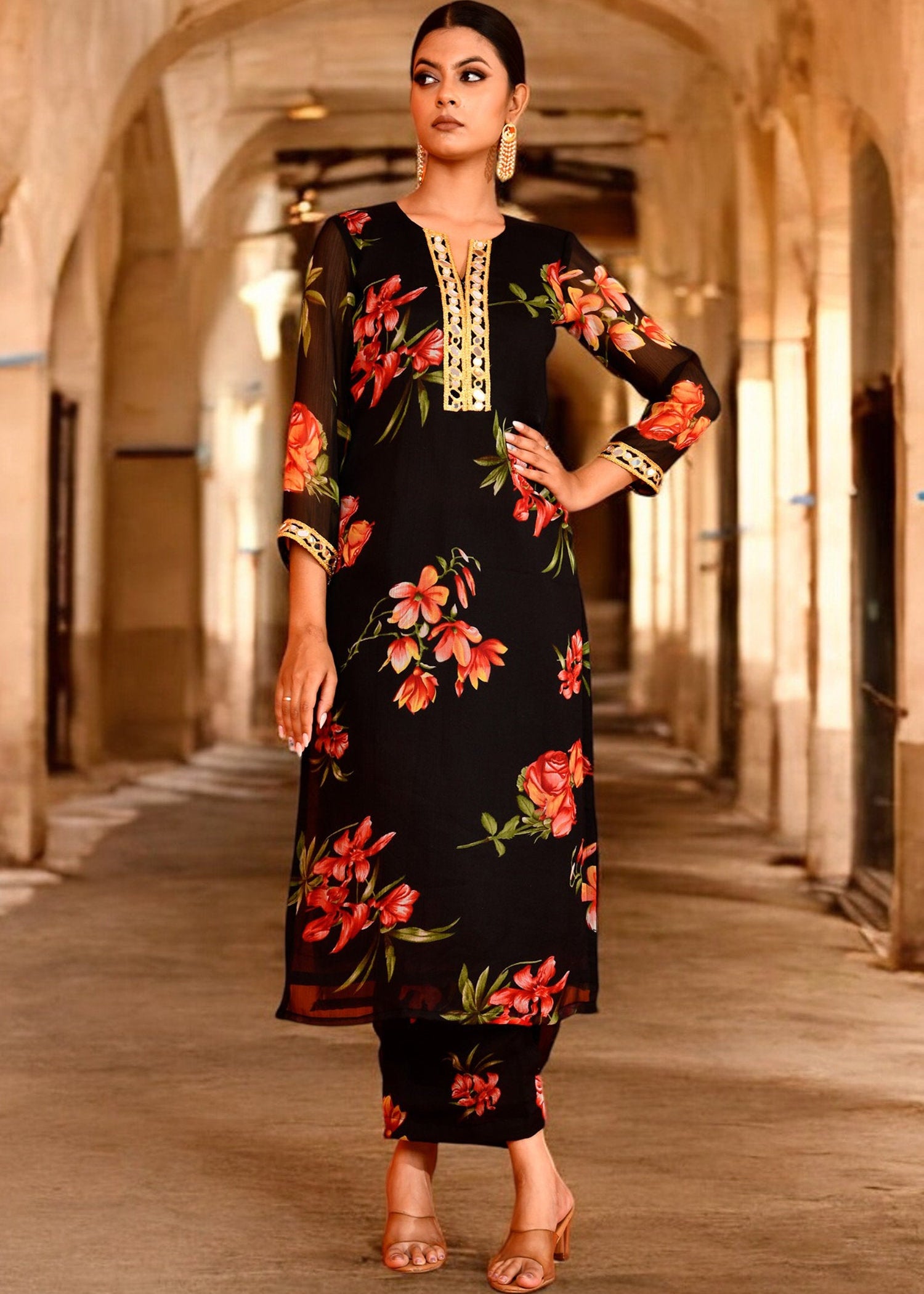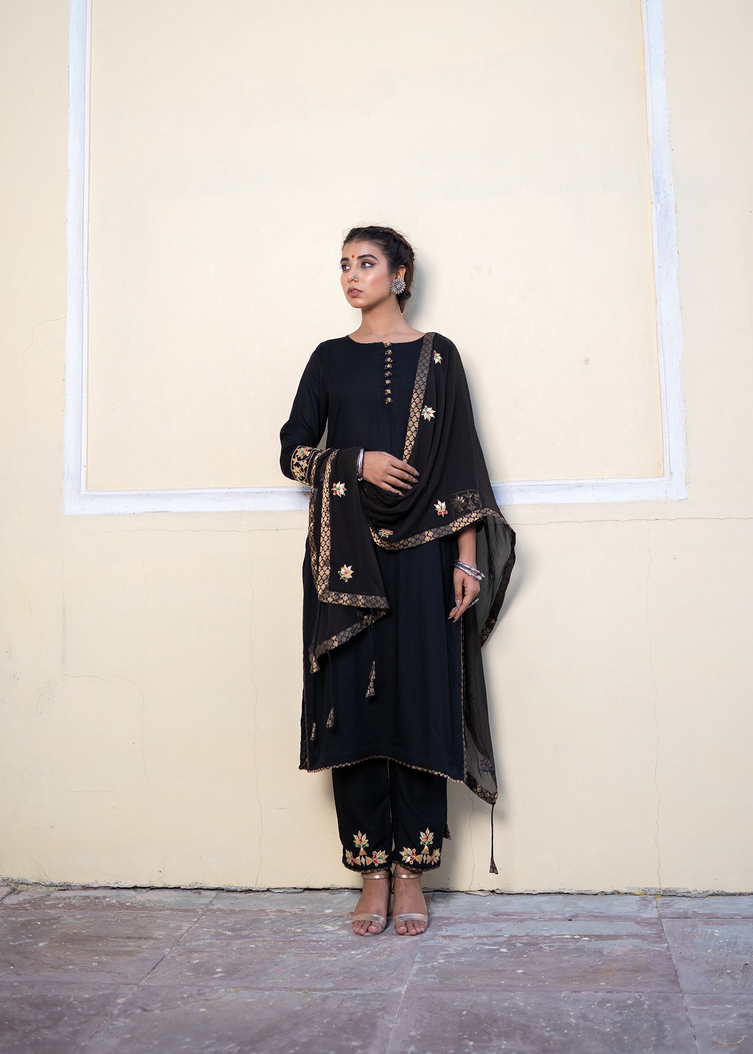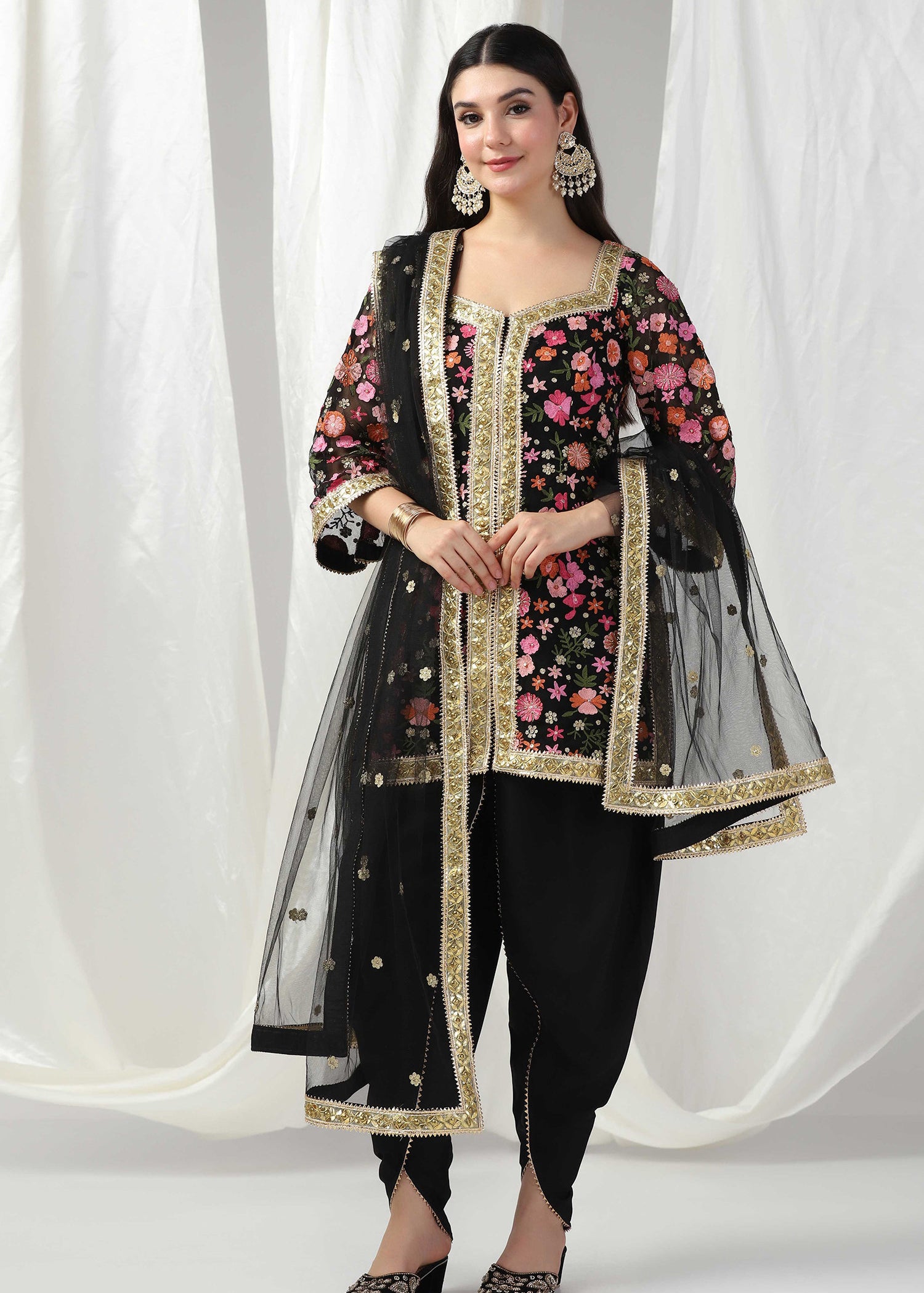 Black Designer Kurti With Georgette Sharara And Net Dupatta