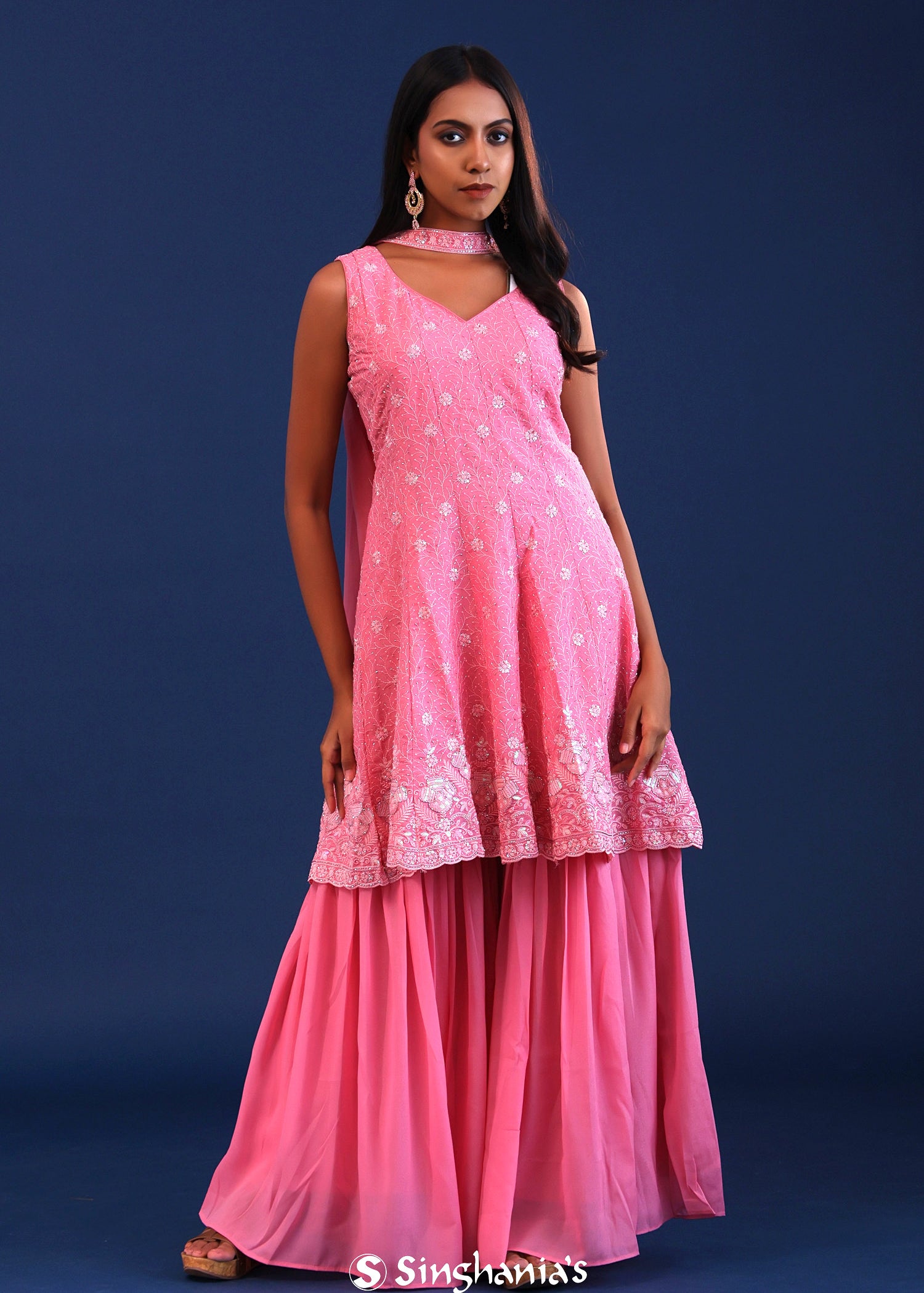 Soft Pink Georgette Sequin Embroidered Sharara Set