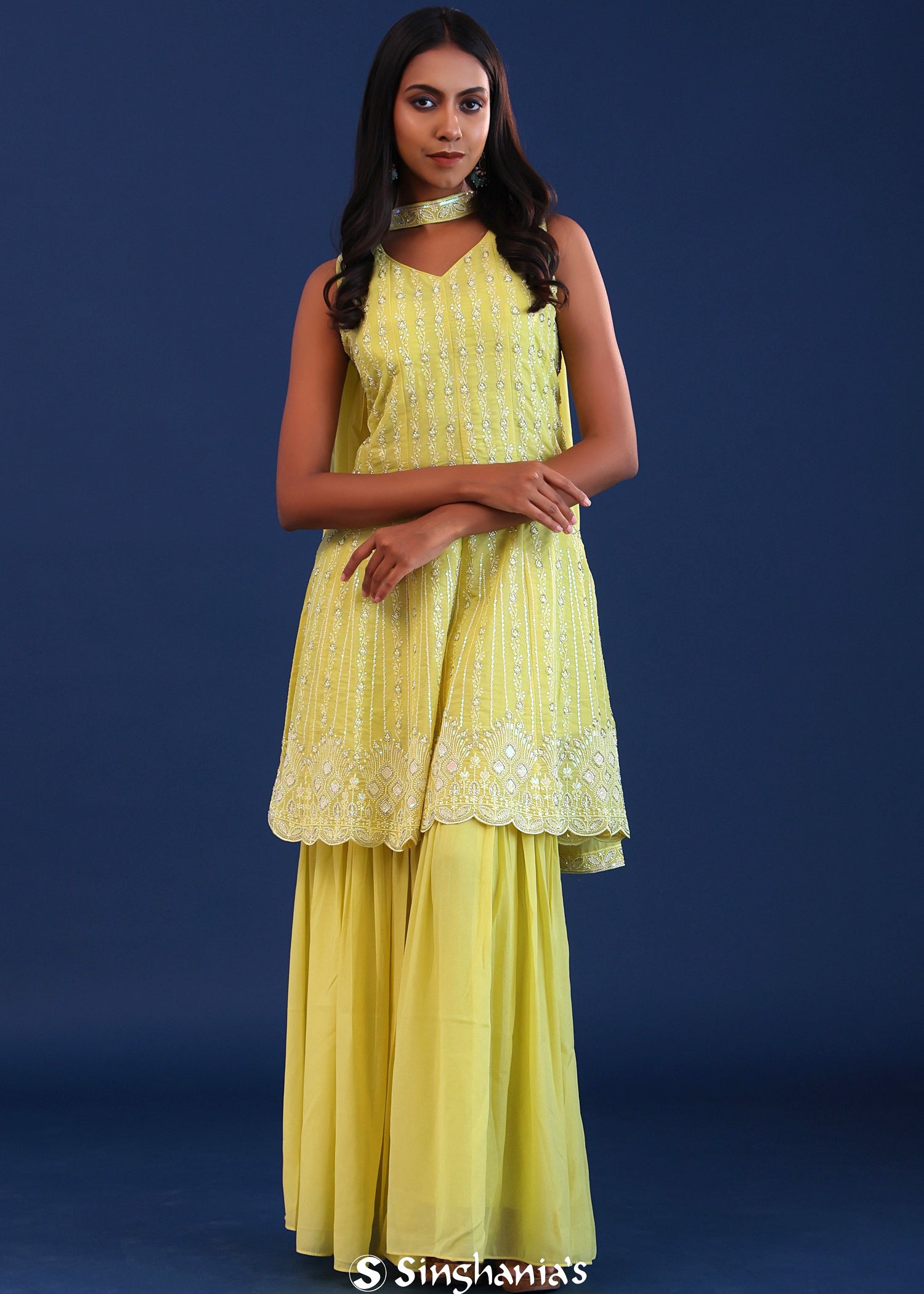 Soft Lime Green Georgette Sequence Embroidered Sharara Set