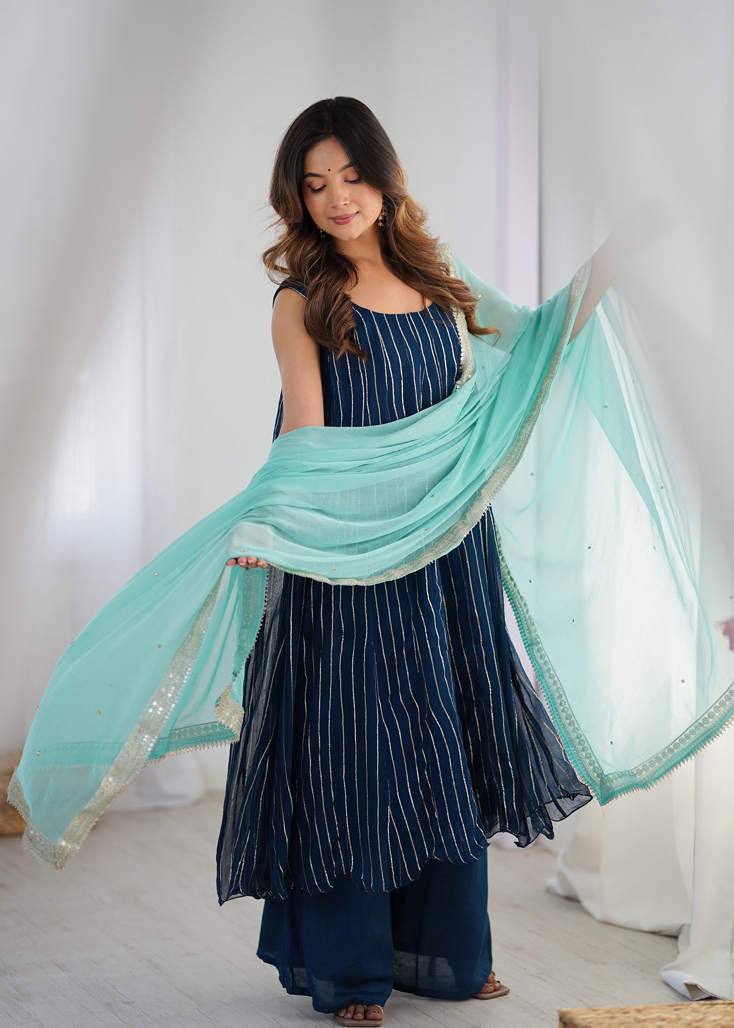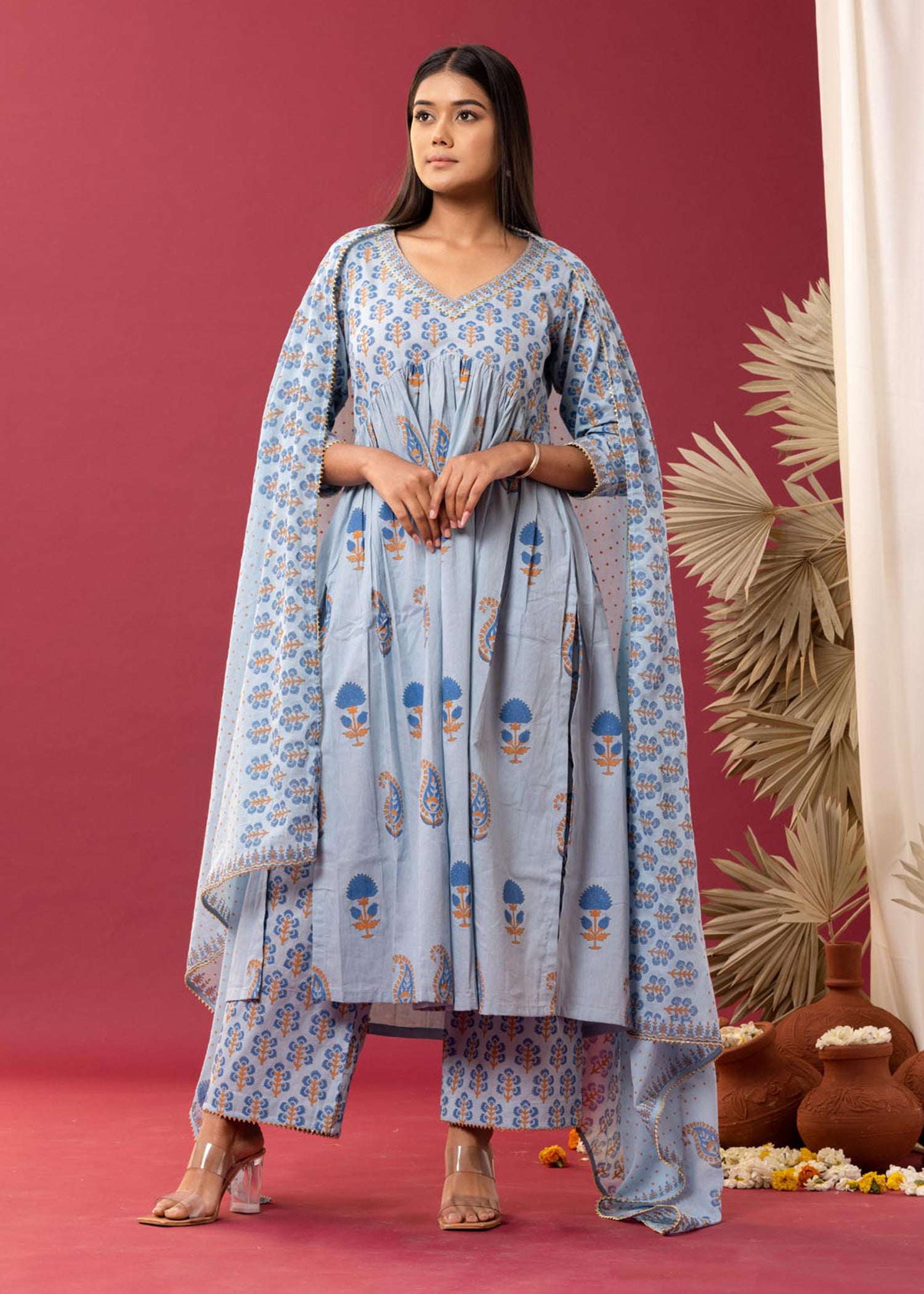 Blue Anarkali Set With Palazzo