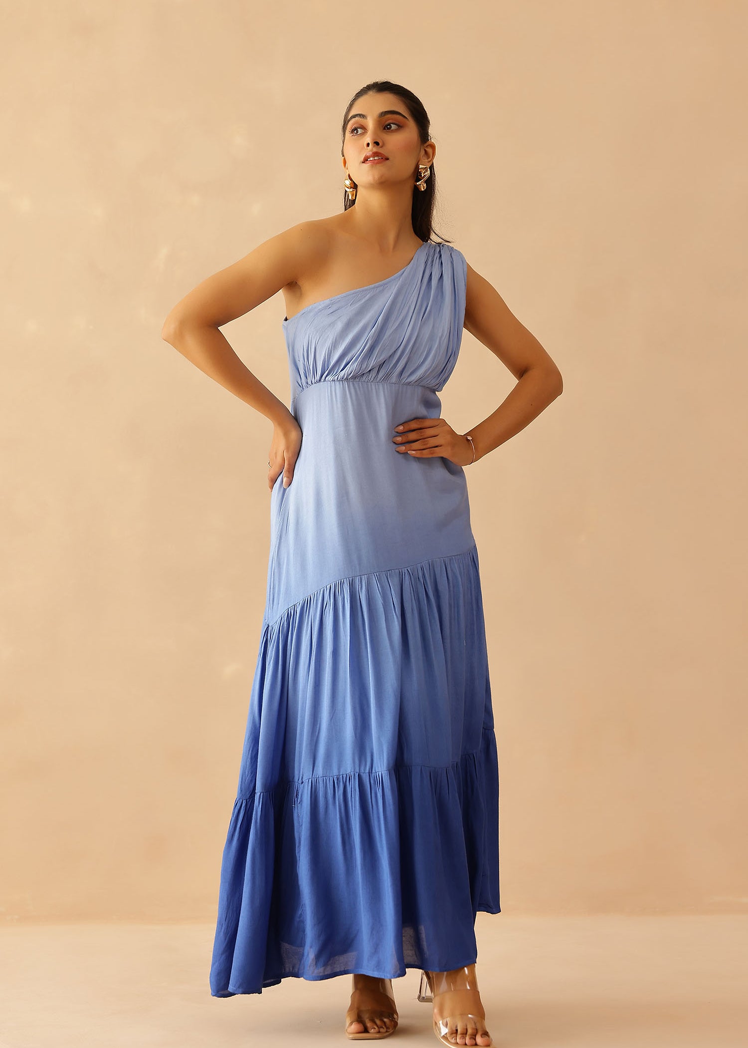 Blue Cascade Cotton Santoon Solid Dress