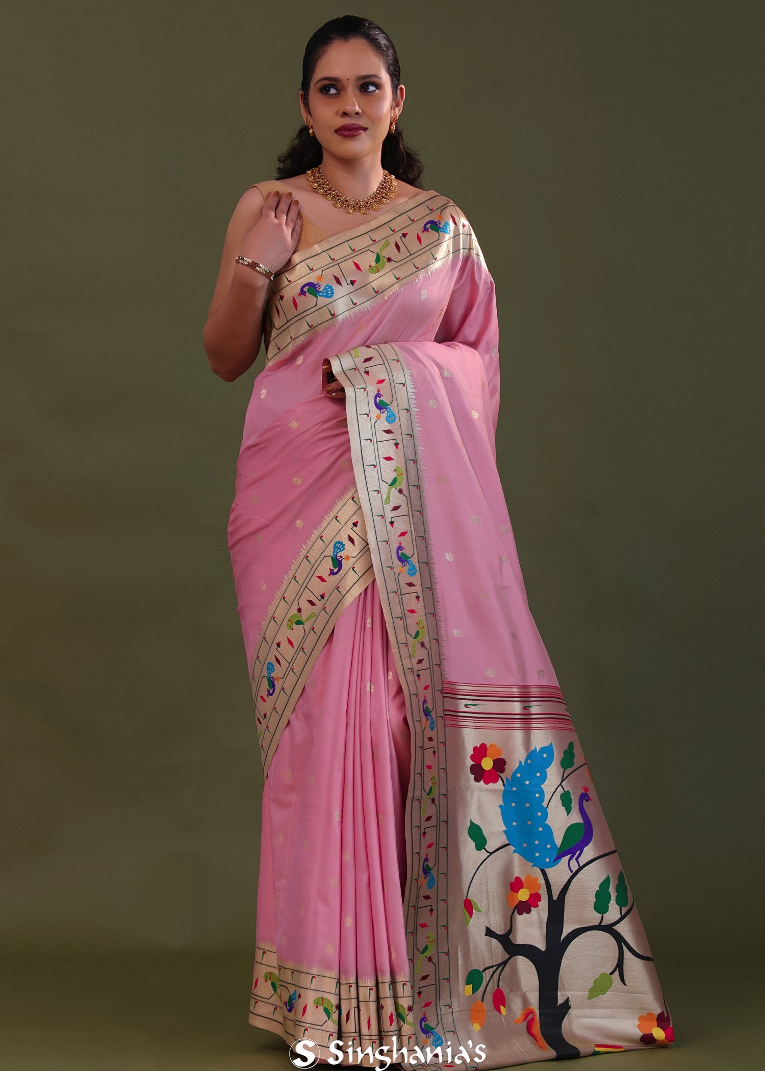Soft Pink Paithani Saree With Butti'S
