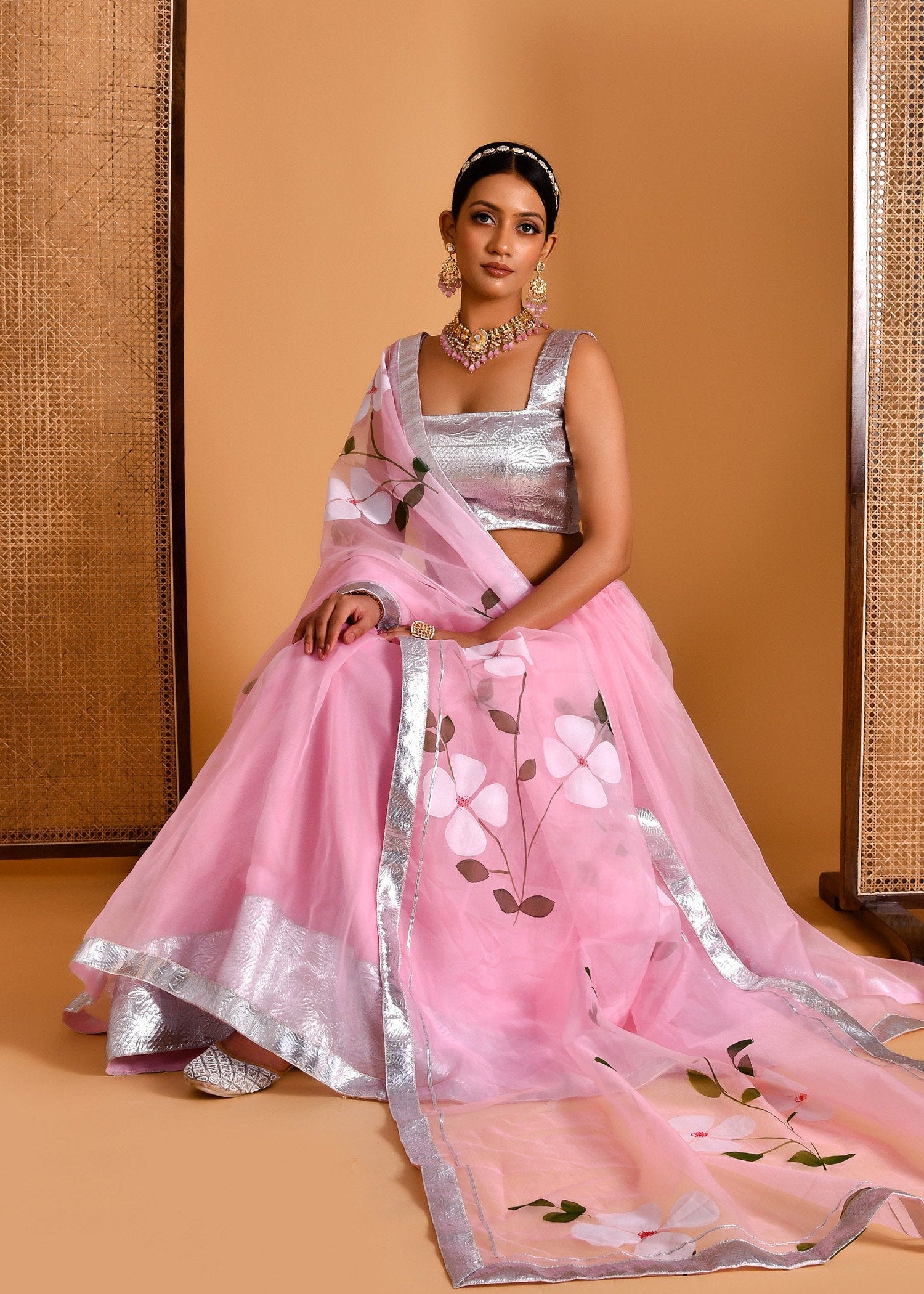 Soft Pink Organza Tissue Lehenga Set