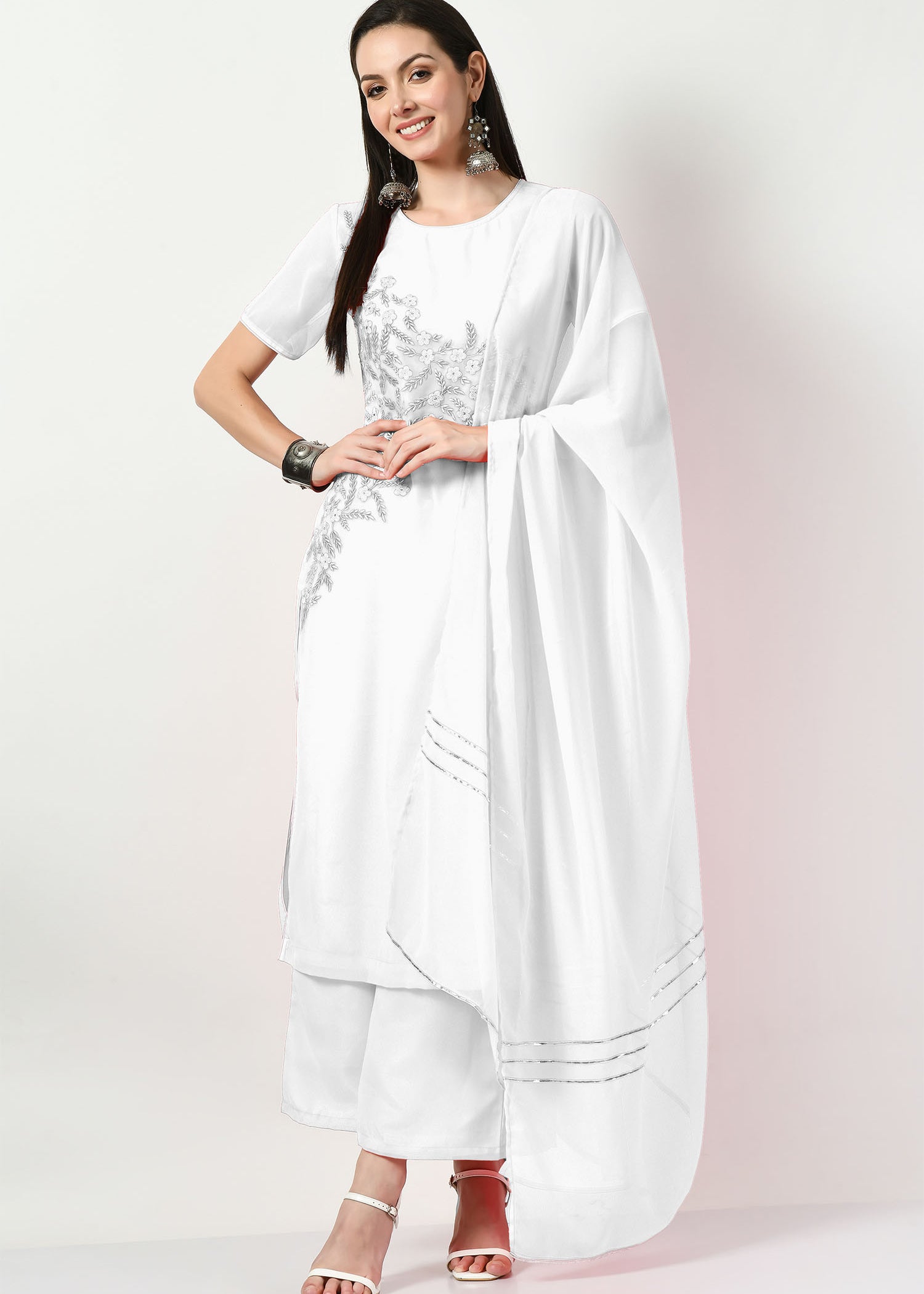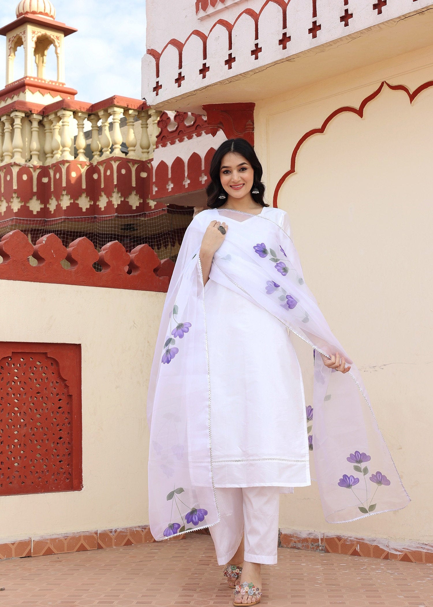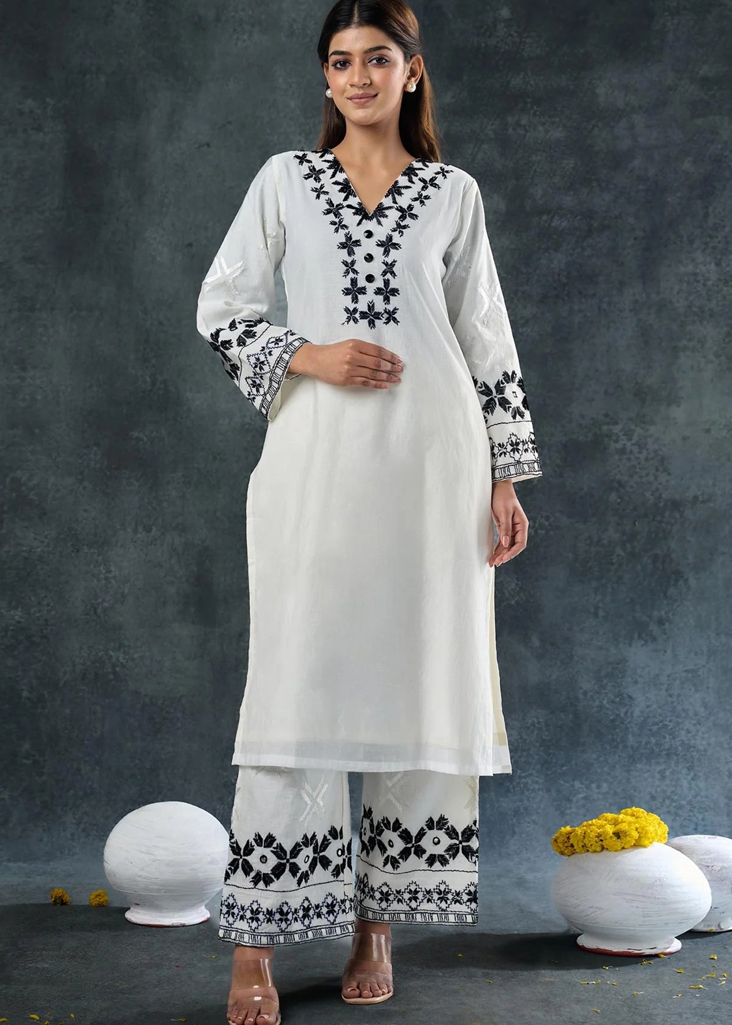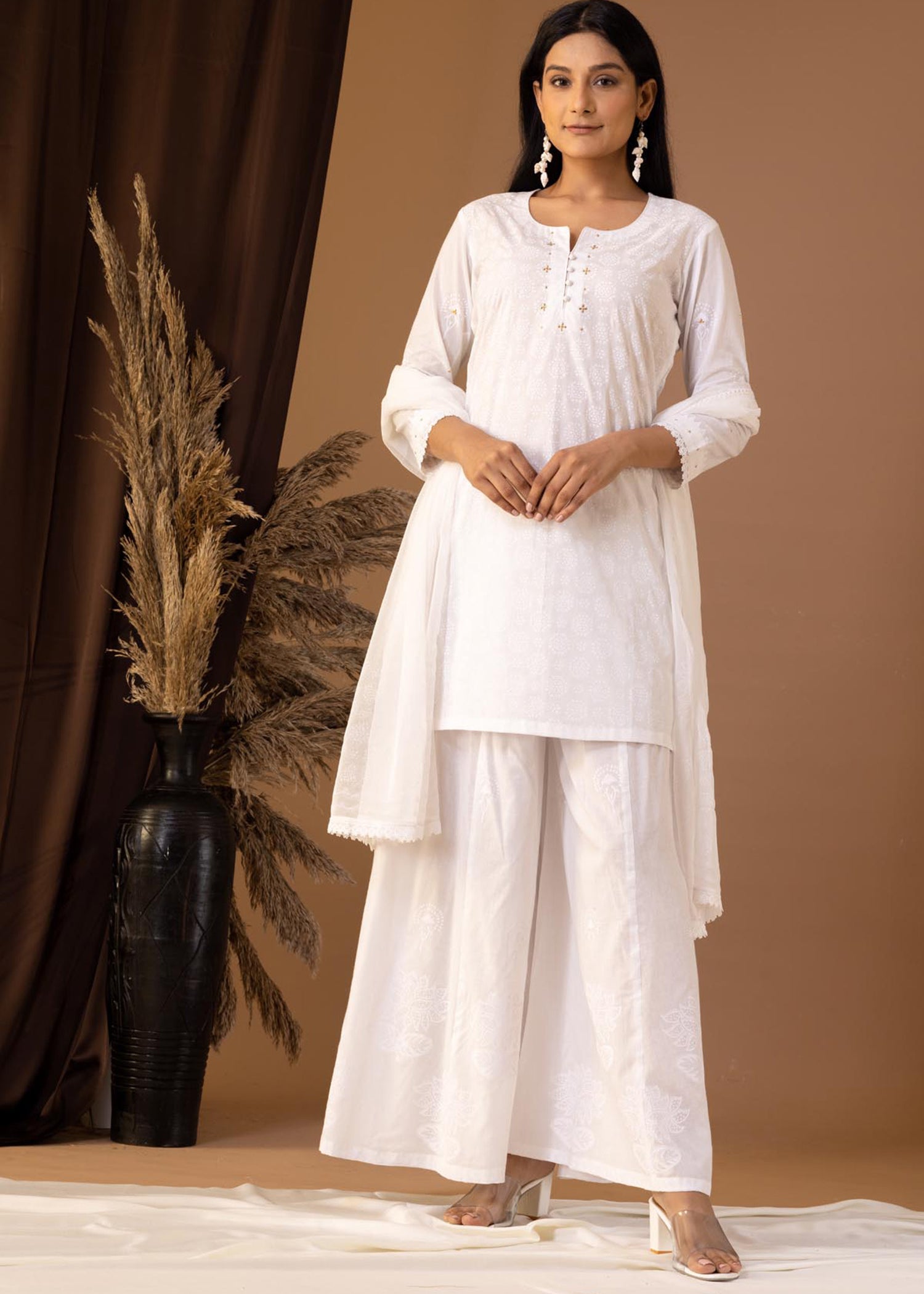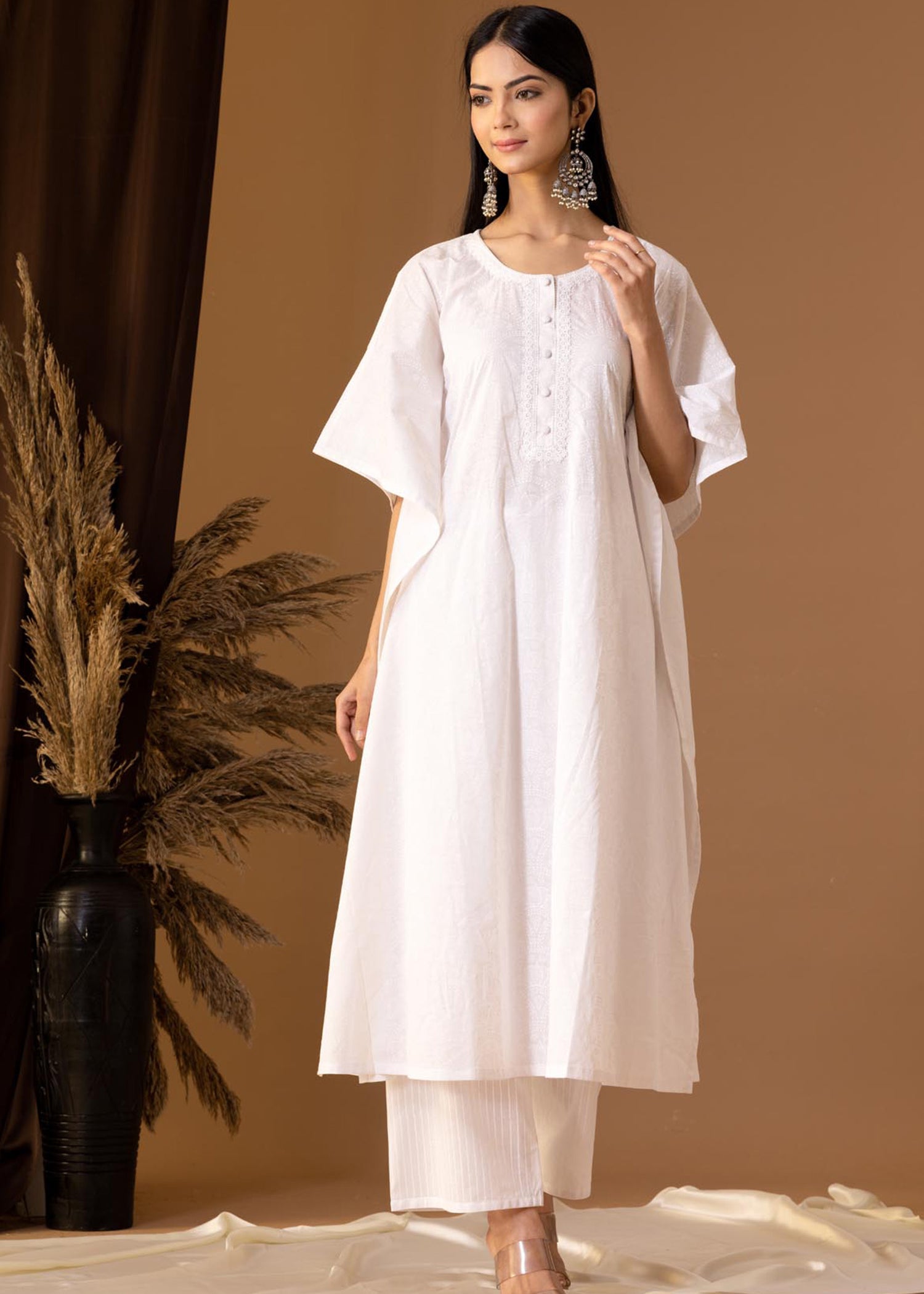 White Khadi Printed Cotton Kaftan With Palazzo Set