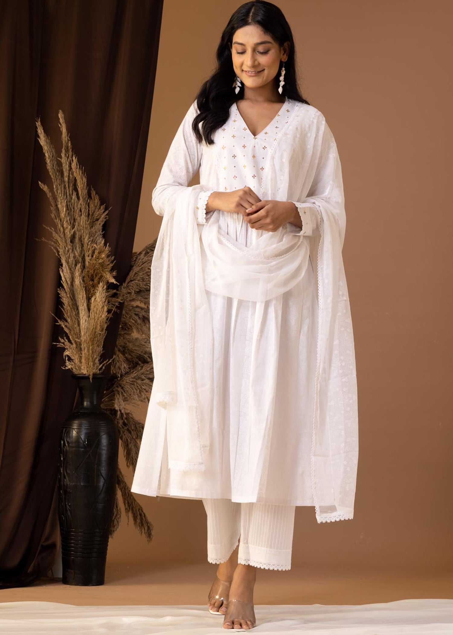 White Handcrafted Double Side Drape Cotton Chola Dress