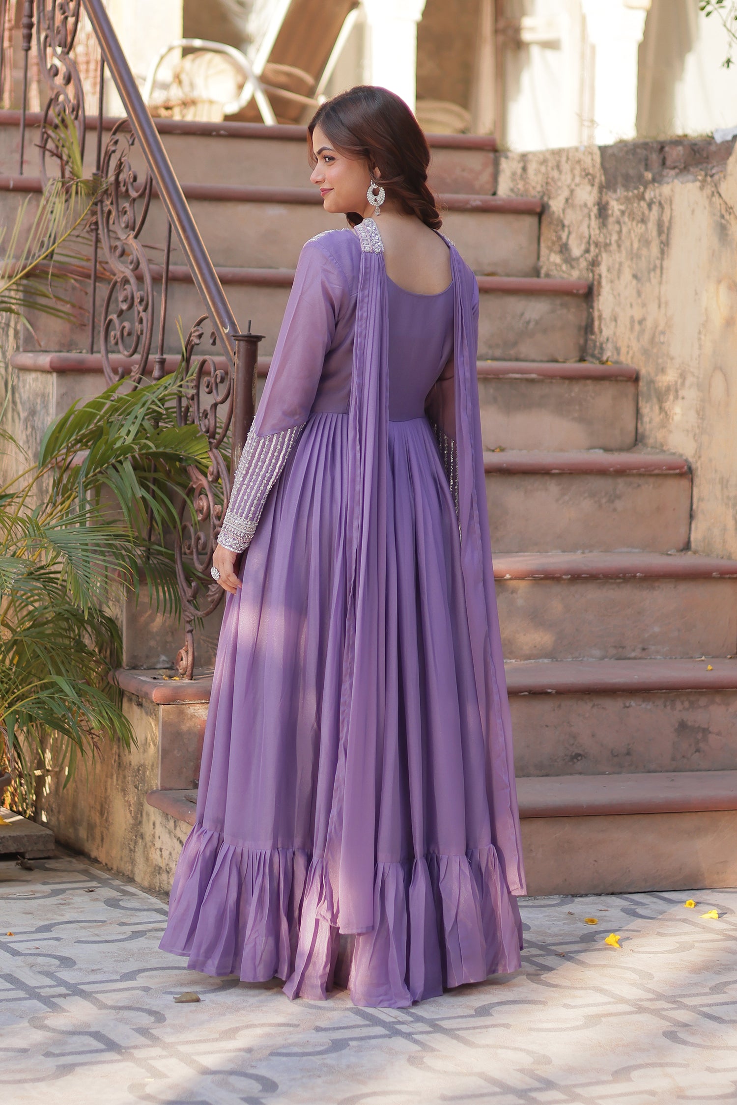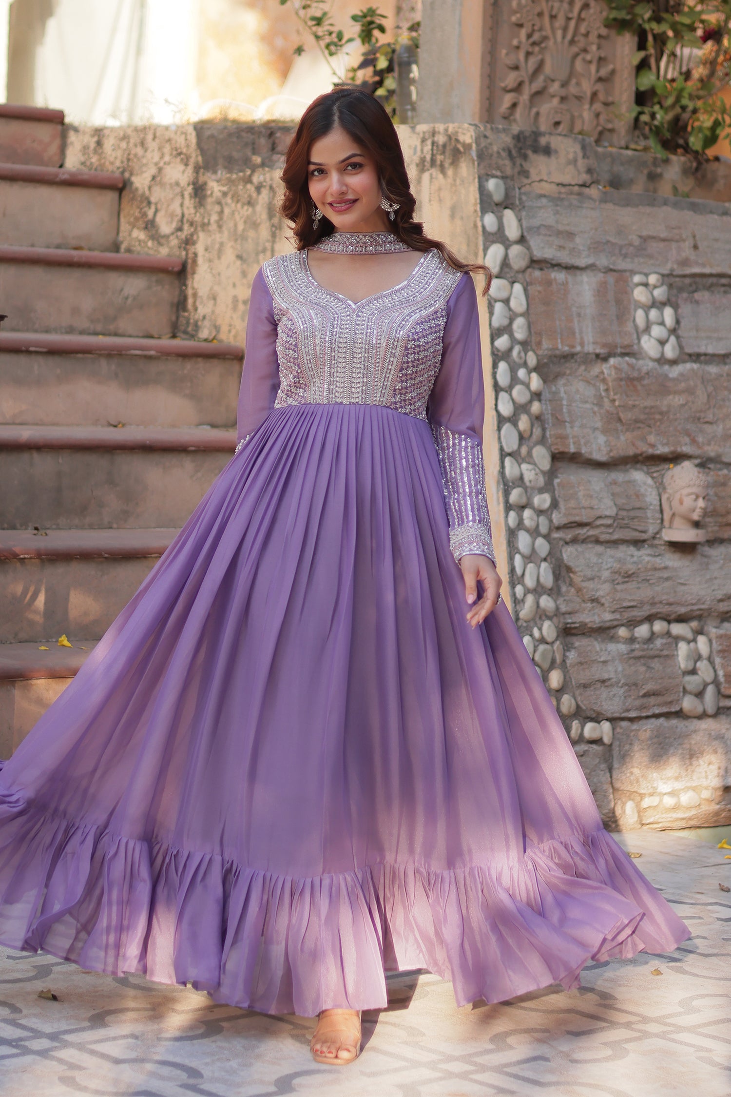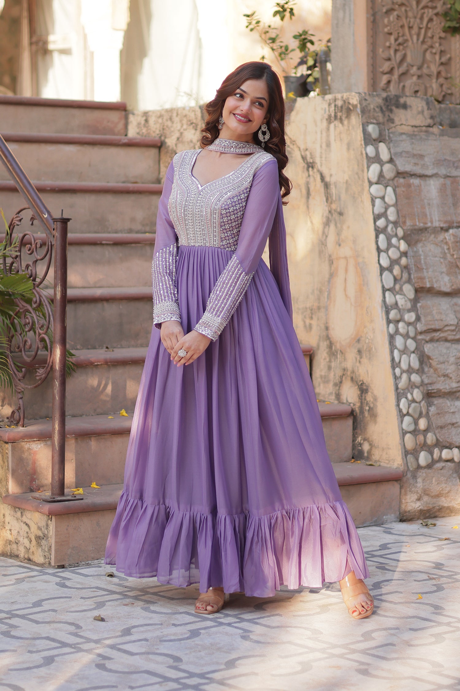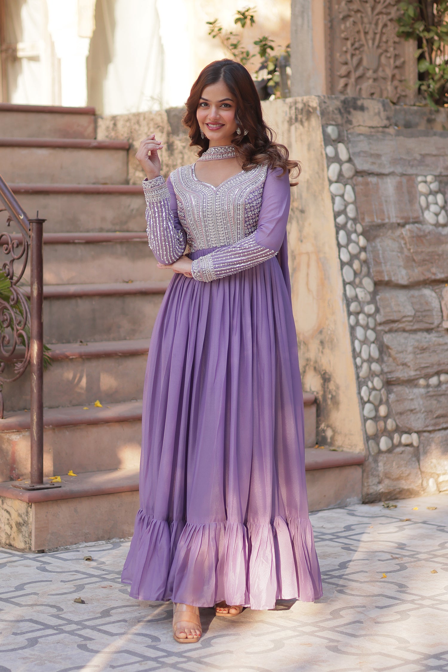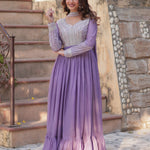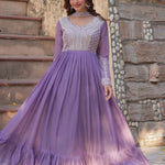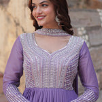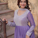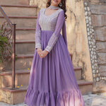 The beautiful lavender star georgette anarkali with cutdana work and a matching dupatta for an amazing traditional and elegant look.