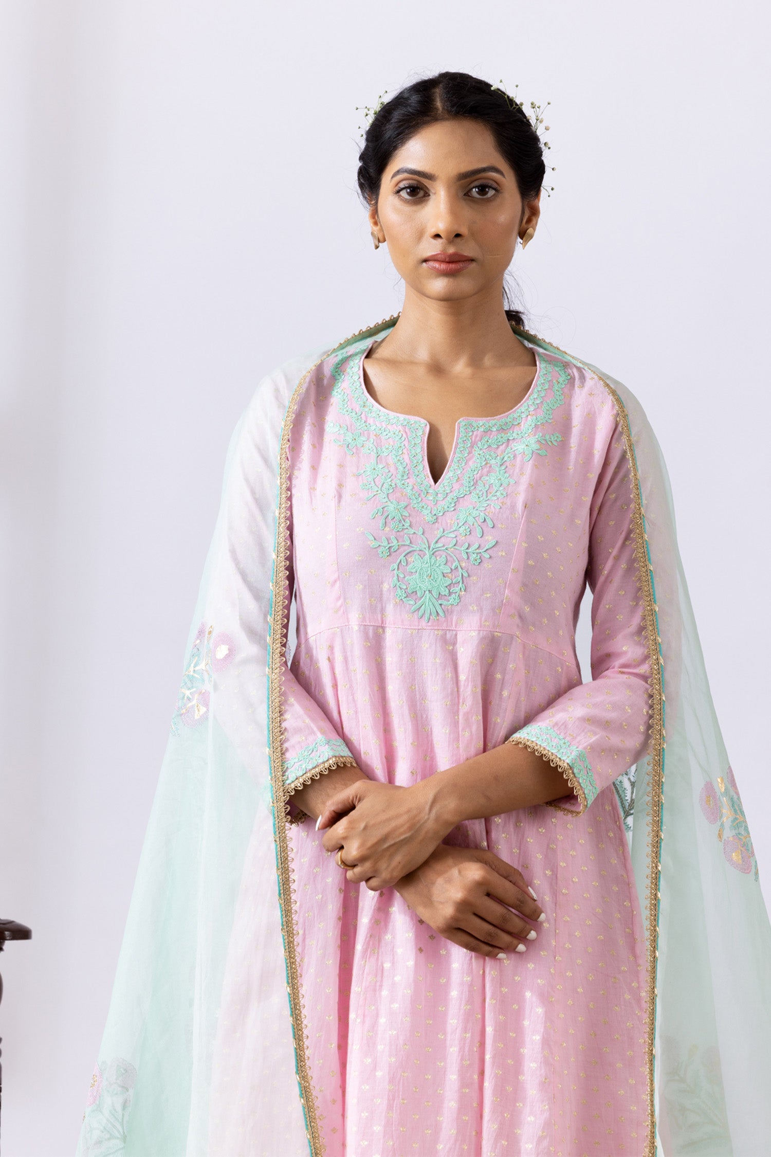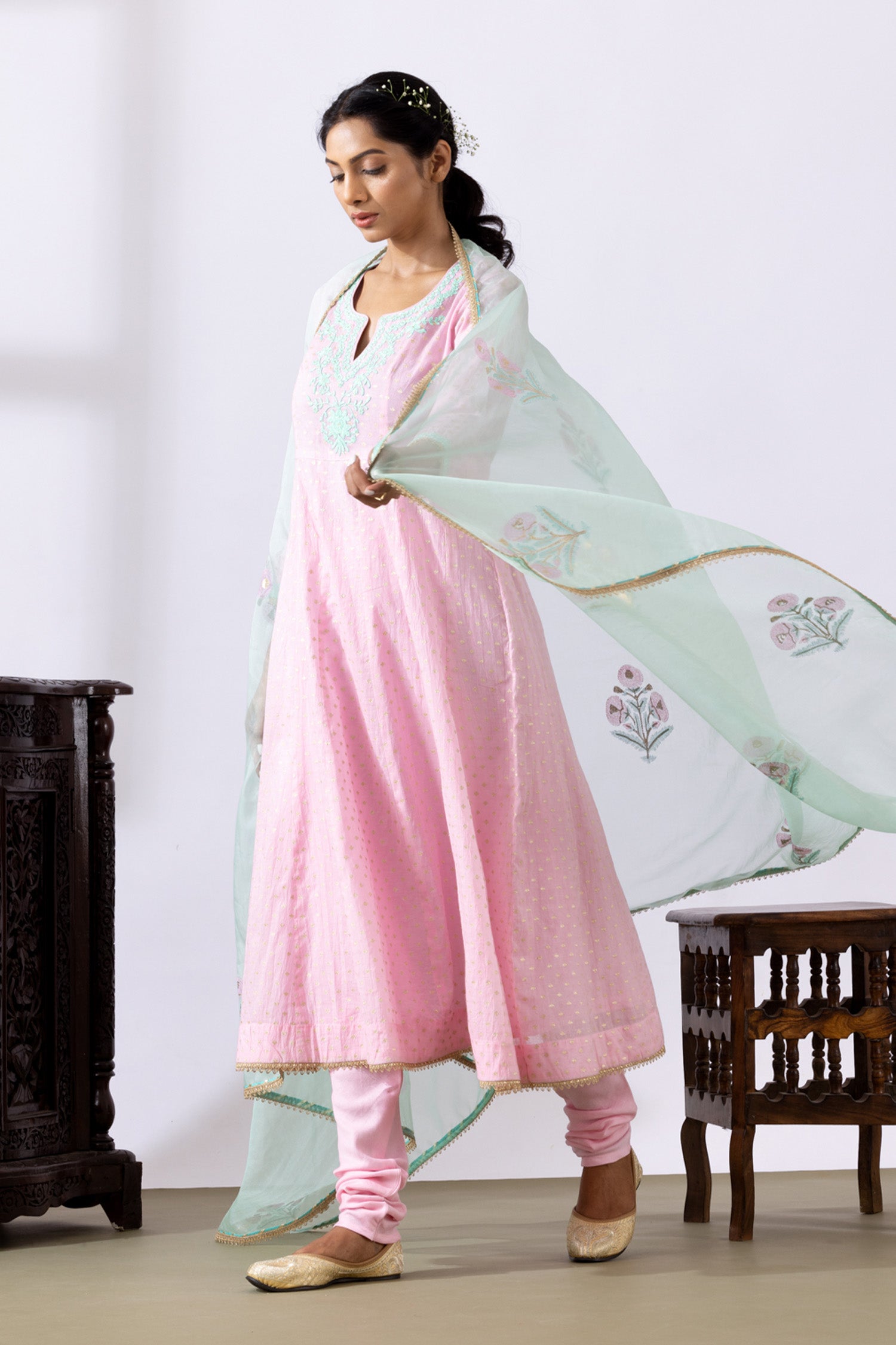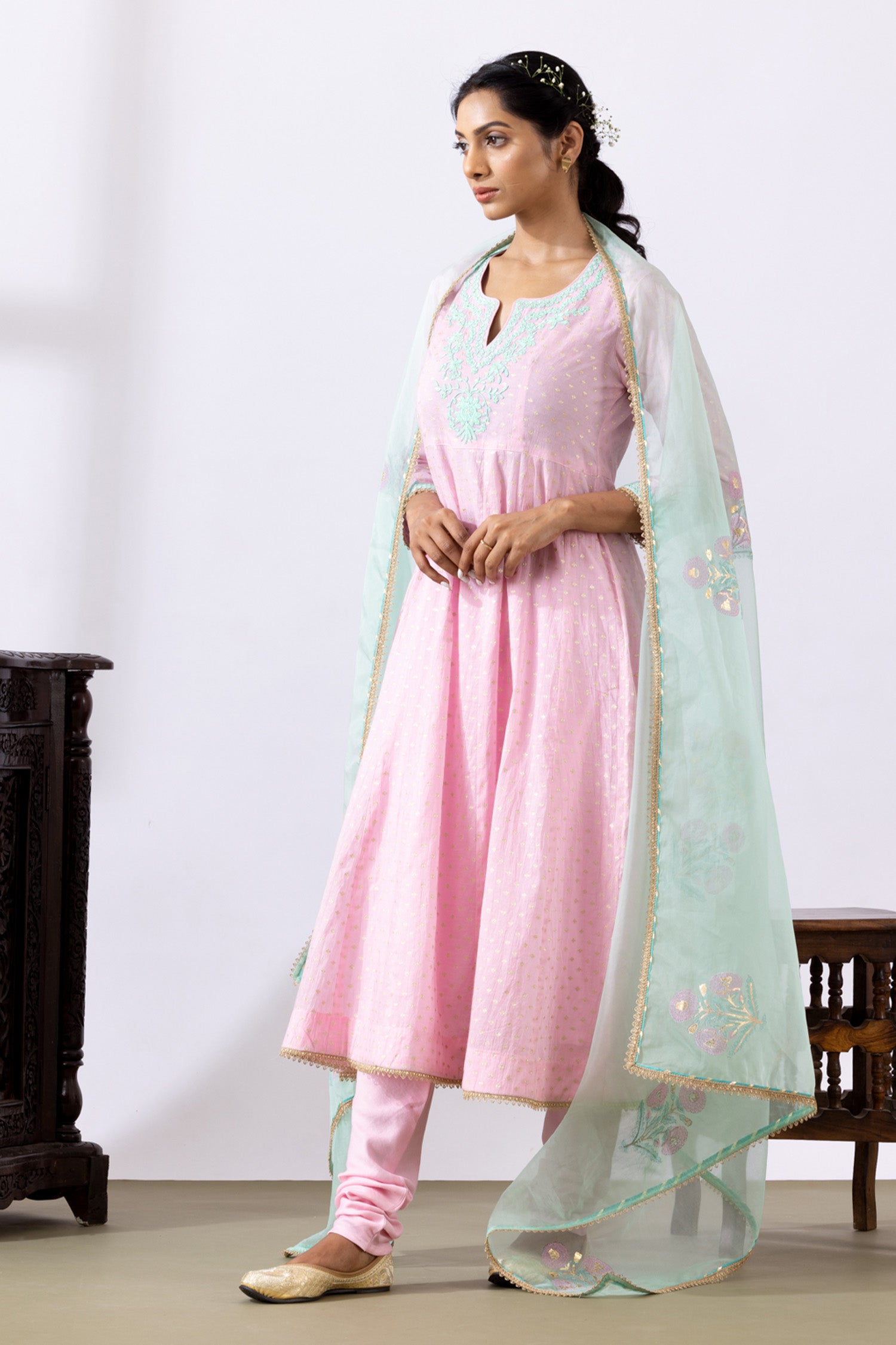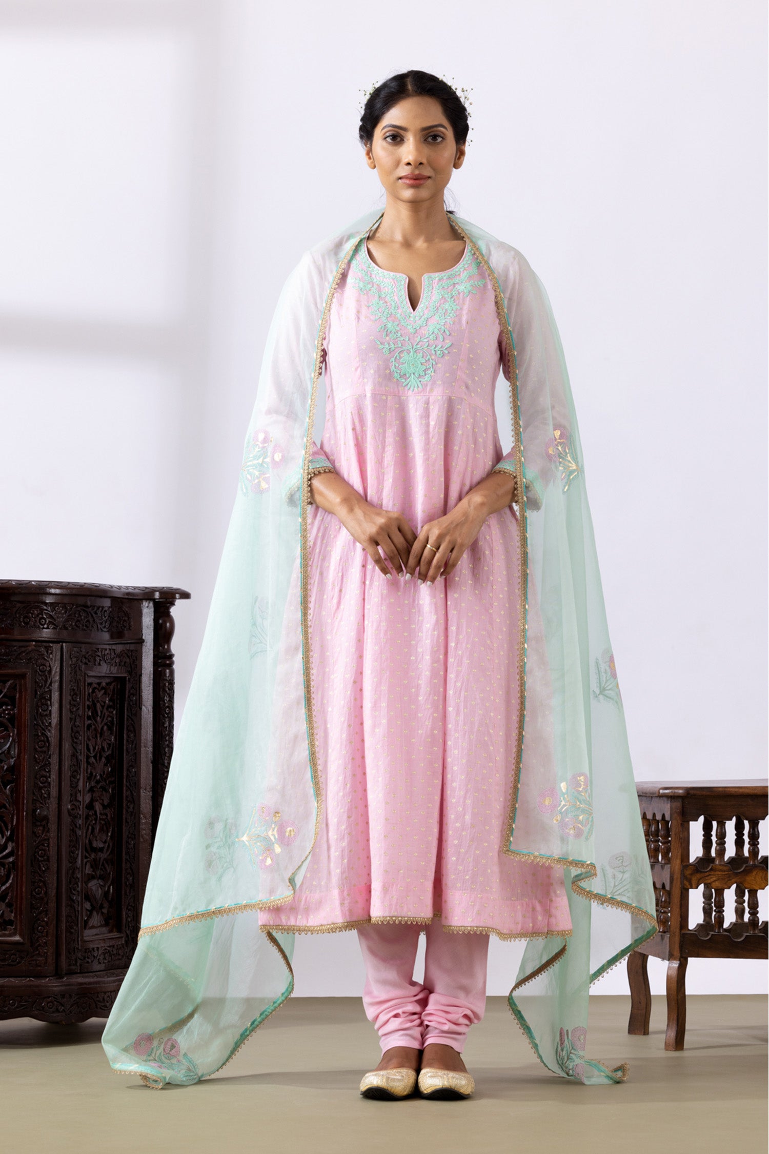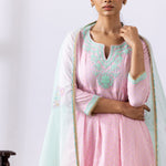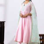 Light Pink Dori Embroidery Chanderi Anarkali Churidar Set