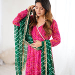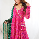 Pink Bandhani Anarkali Set