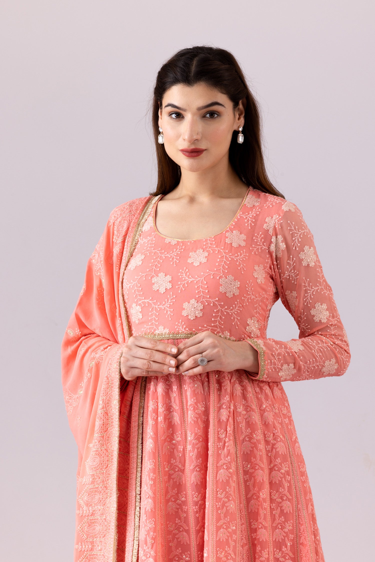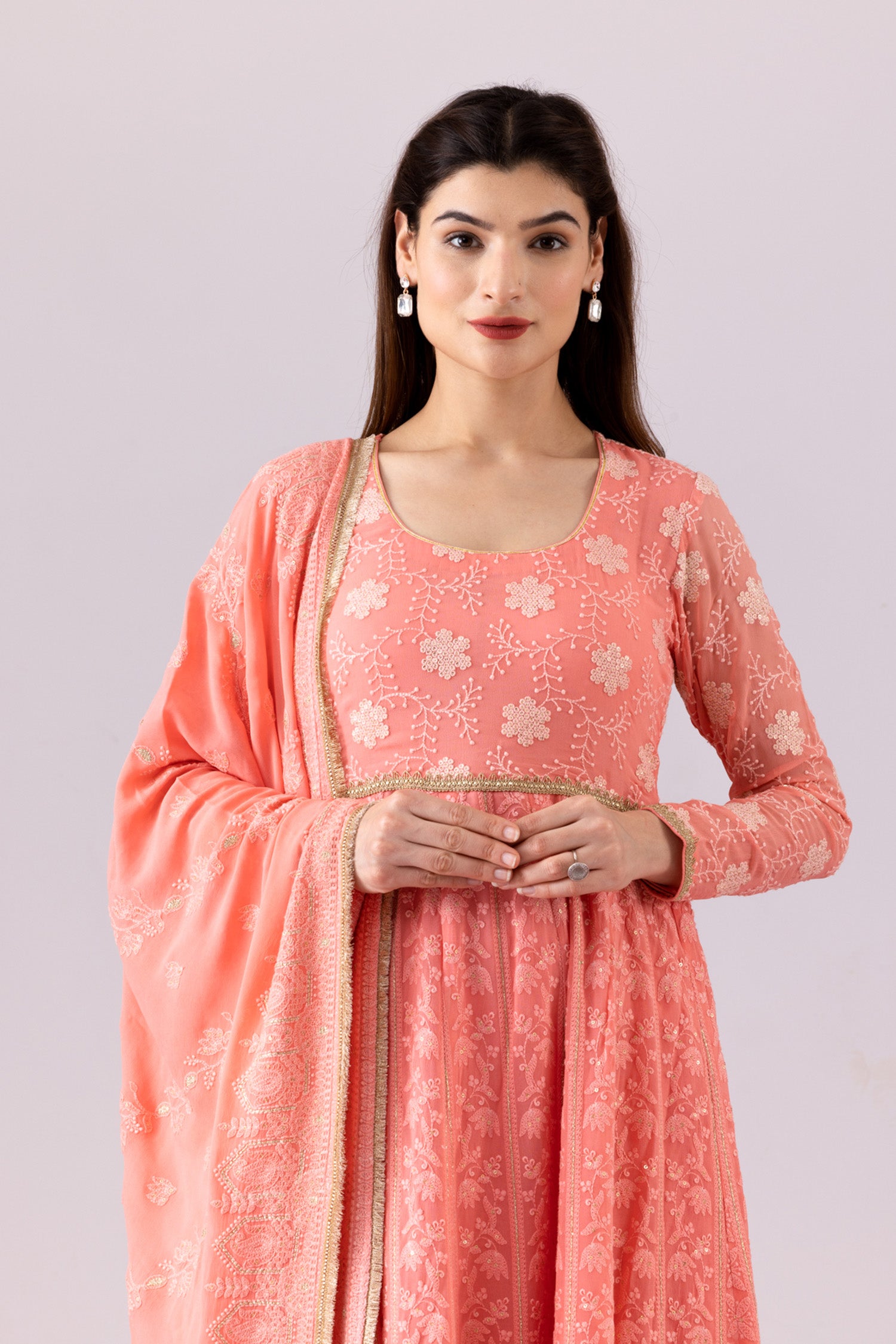 Pink Georgette Anarkali Set With Dupatta
