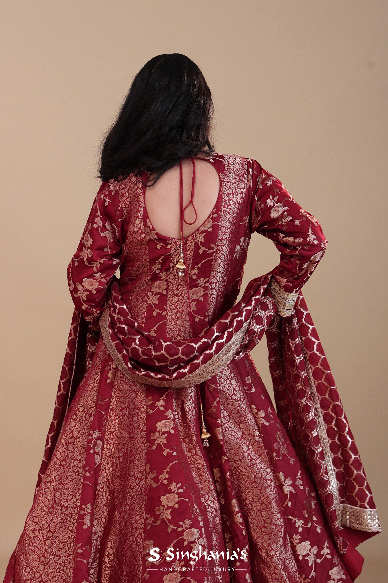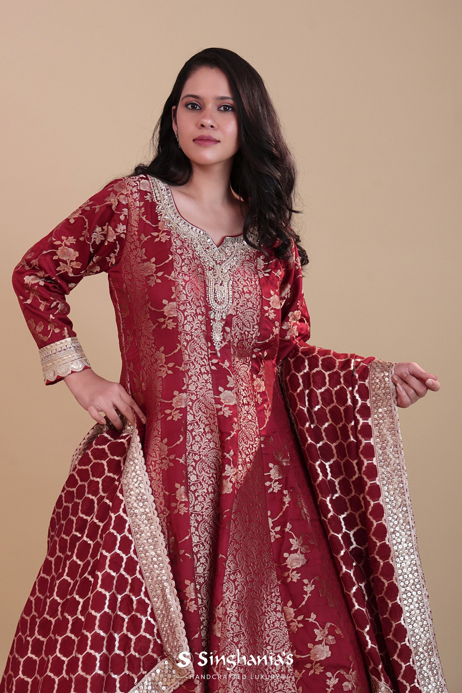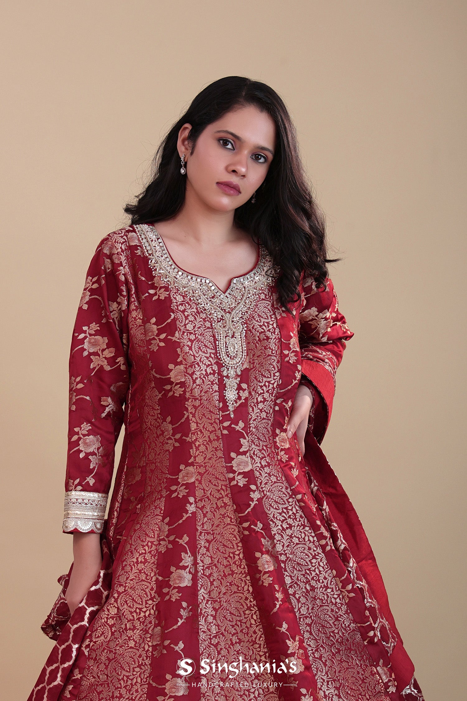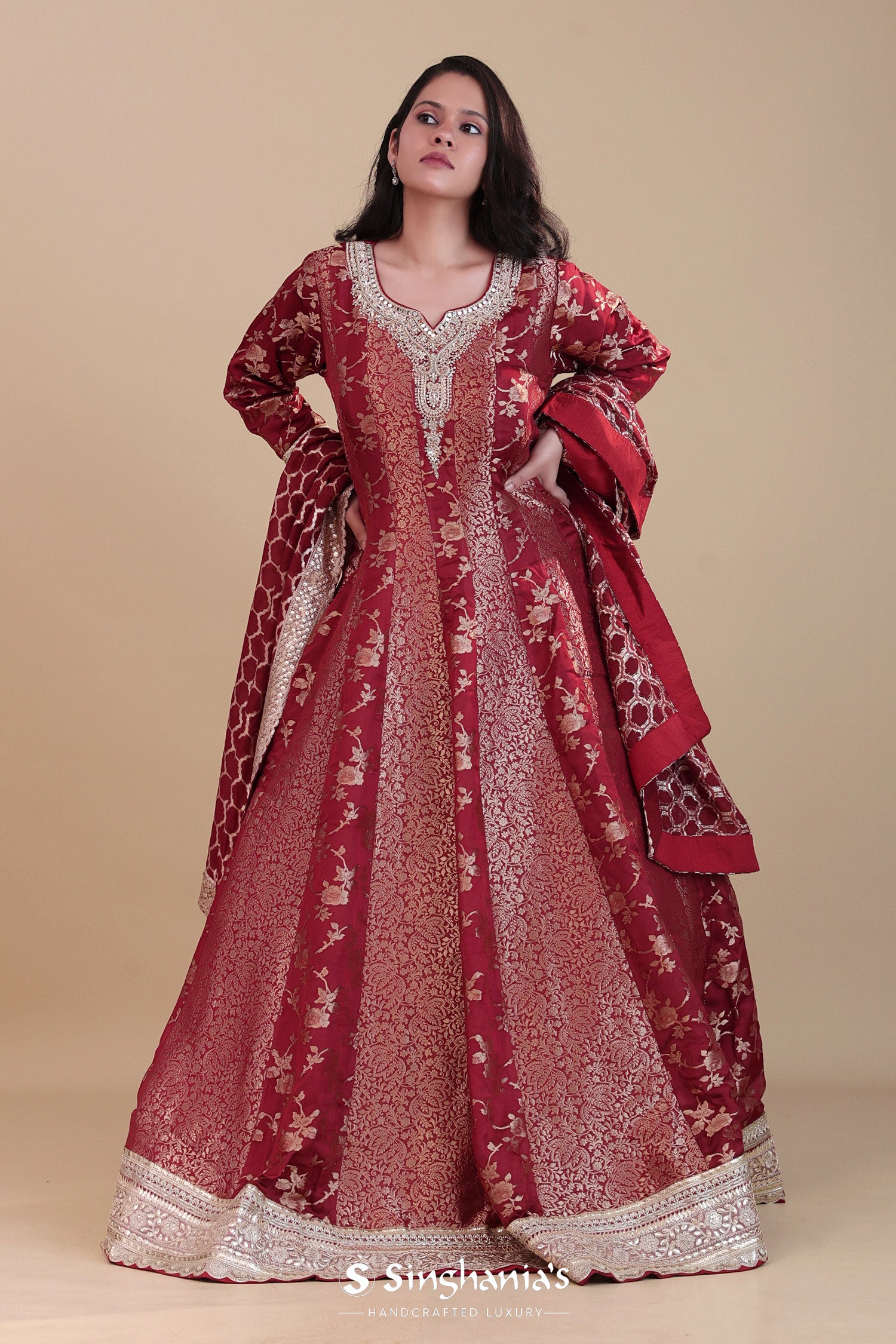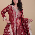 Red Banarasi Silk Anarkali Set