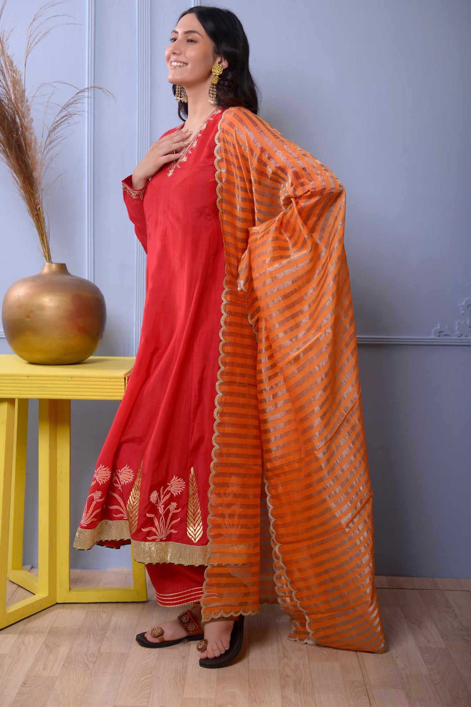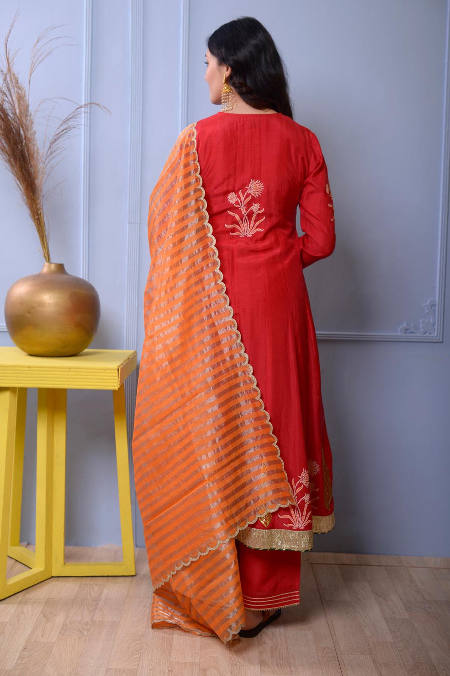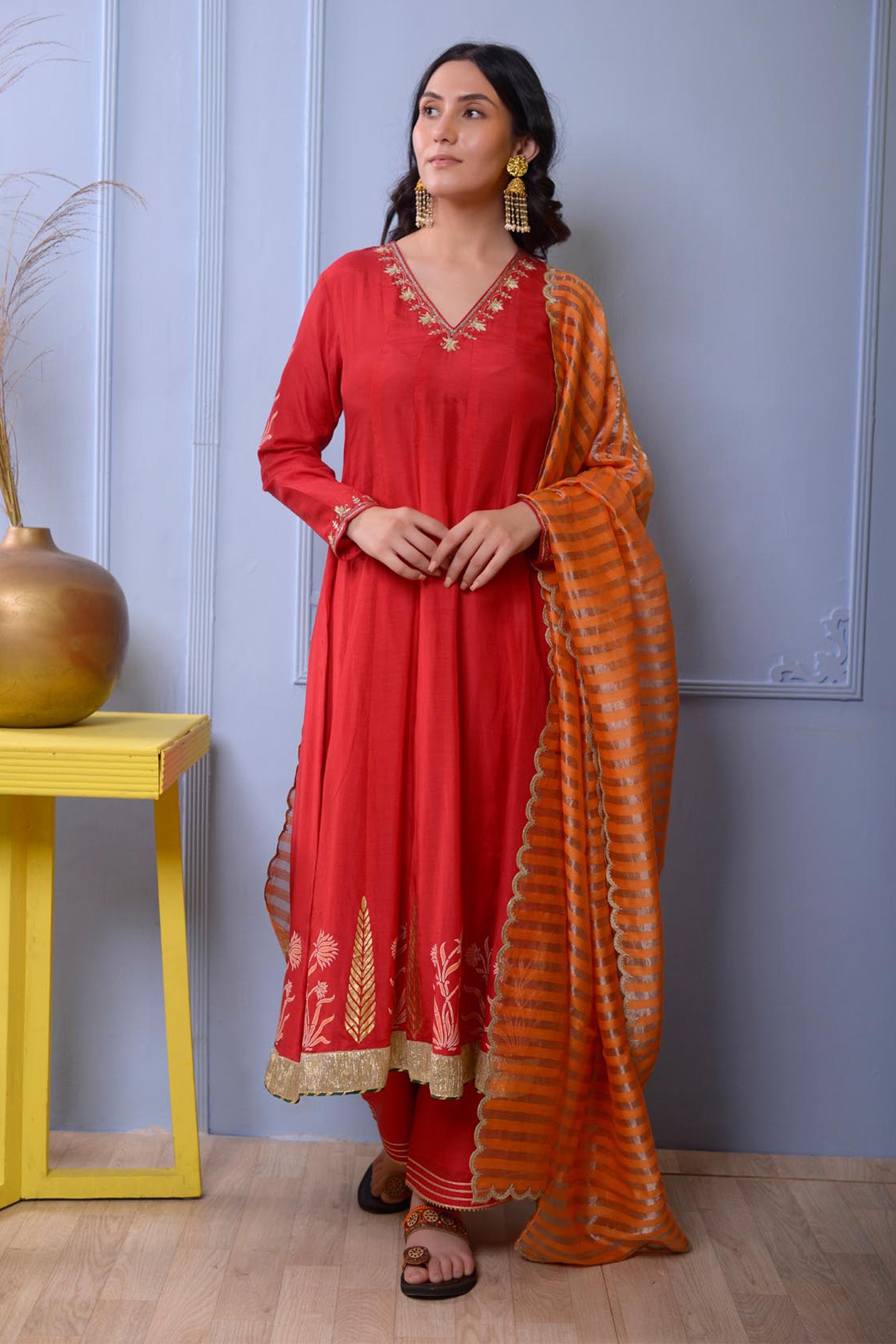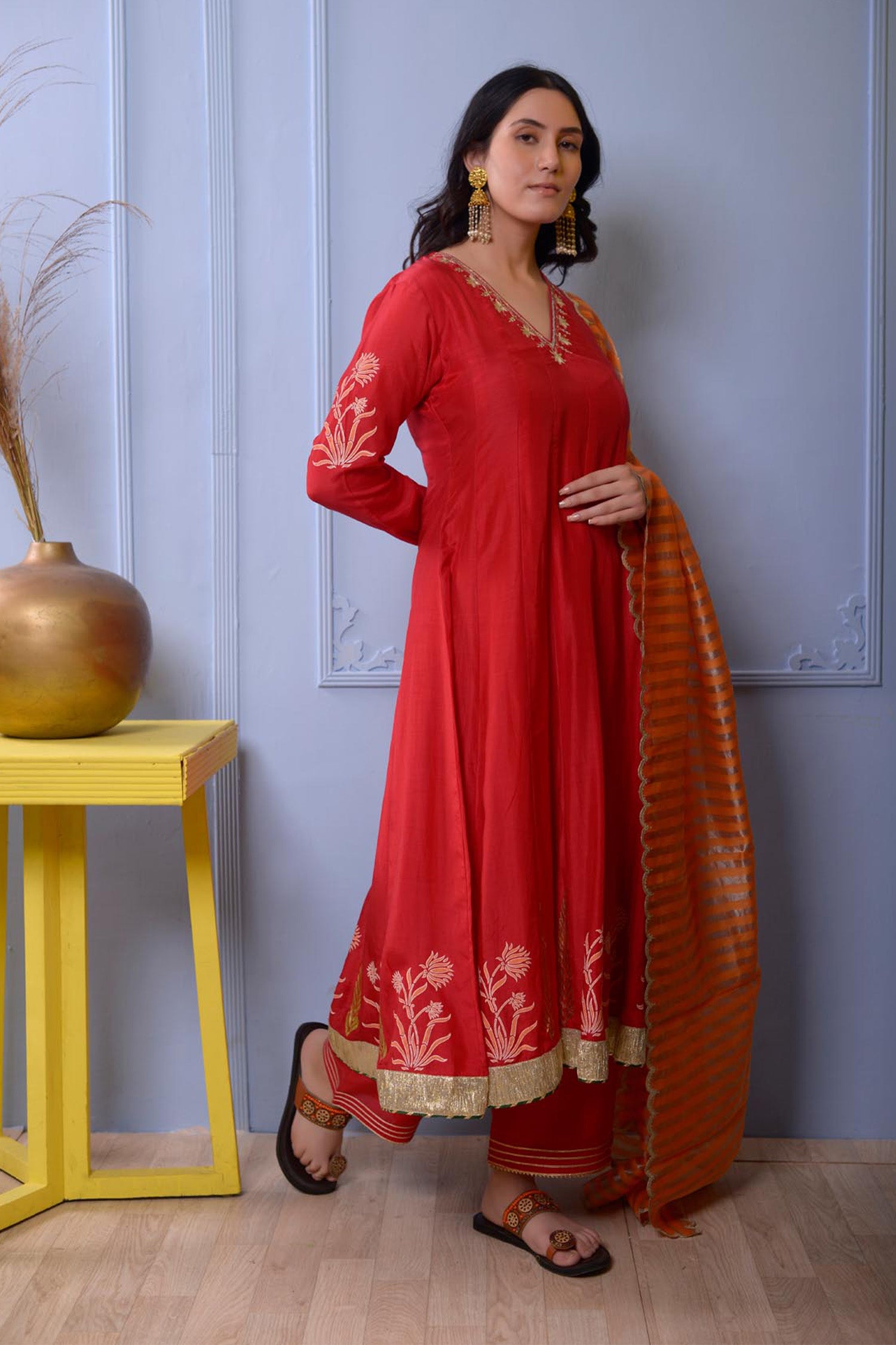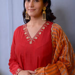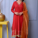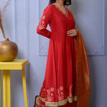 Red Cotton Silk Anarkali Set