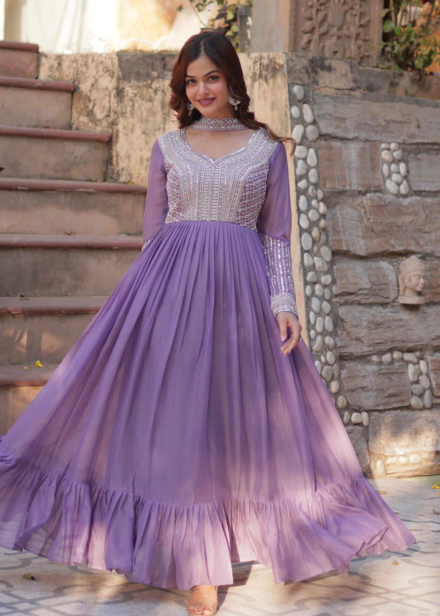 Dusty Maroon Georgette Floral Embroidered Anarkali Set