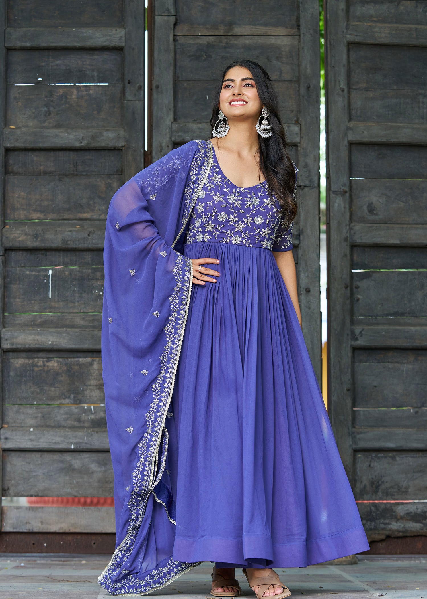 Blueberry Blue Faux Blooming Embroidered Anarkali Set