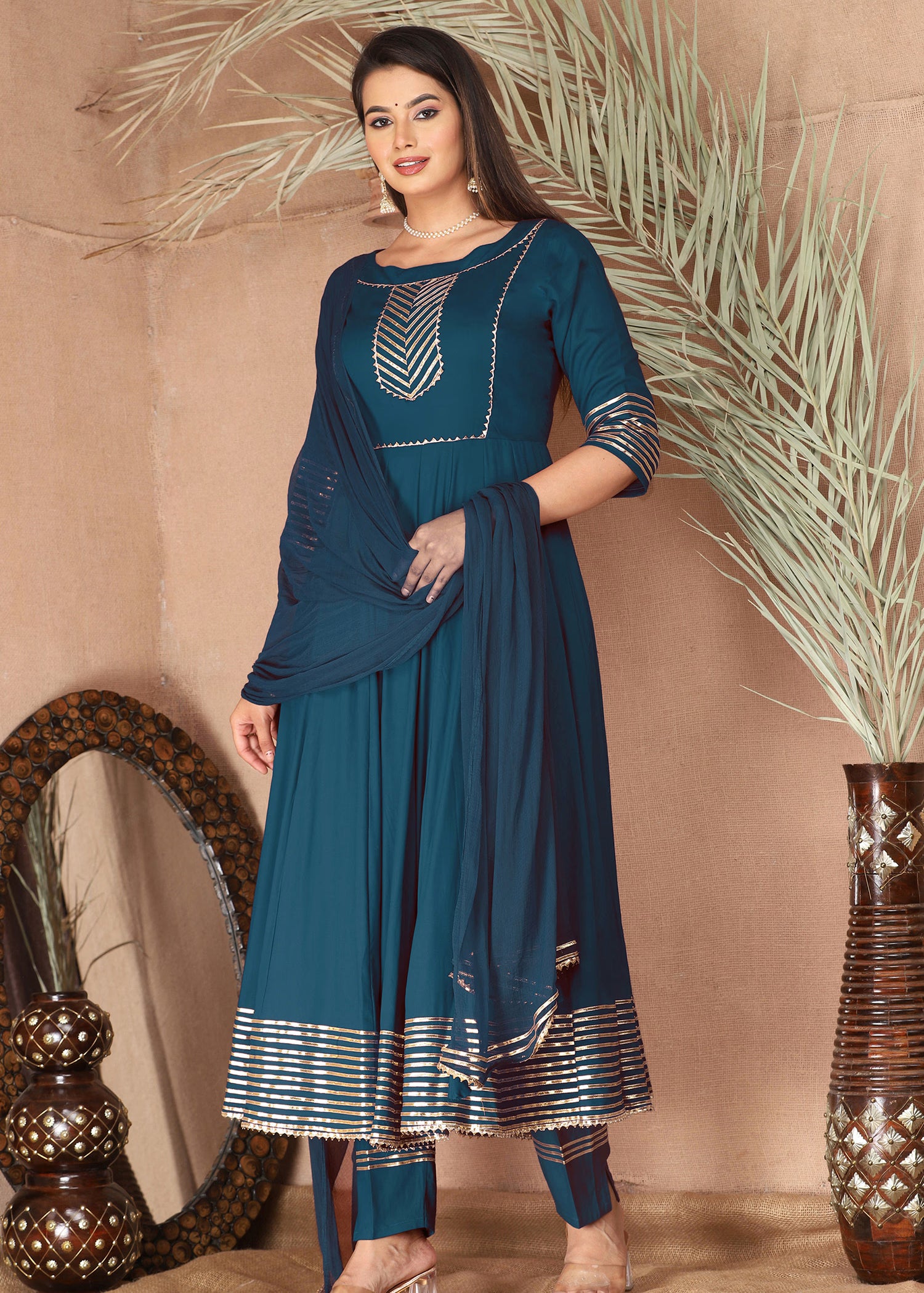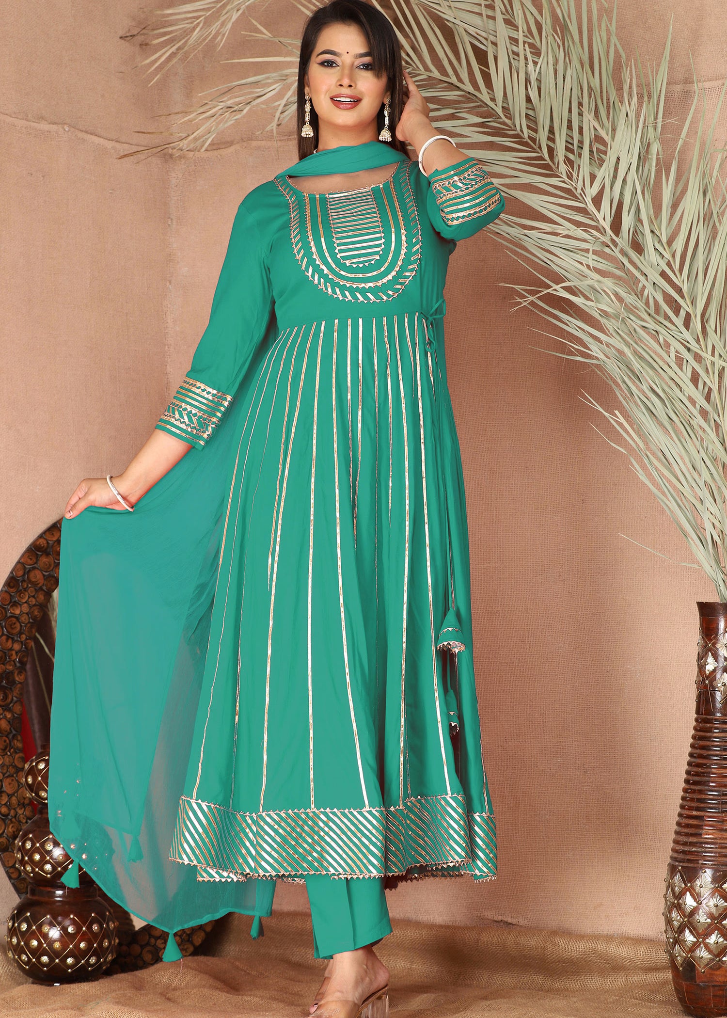 Sea Greenish Cyan Rayon Gota Work Anarkali Set
