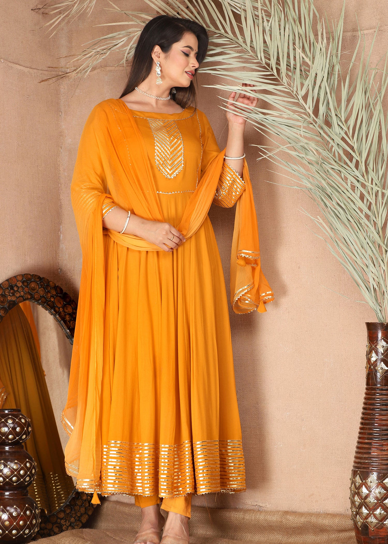 Carrot Orange Rayon Gota Work Anarkali Set